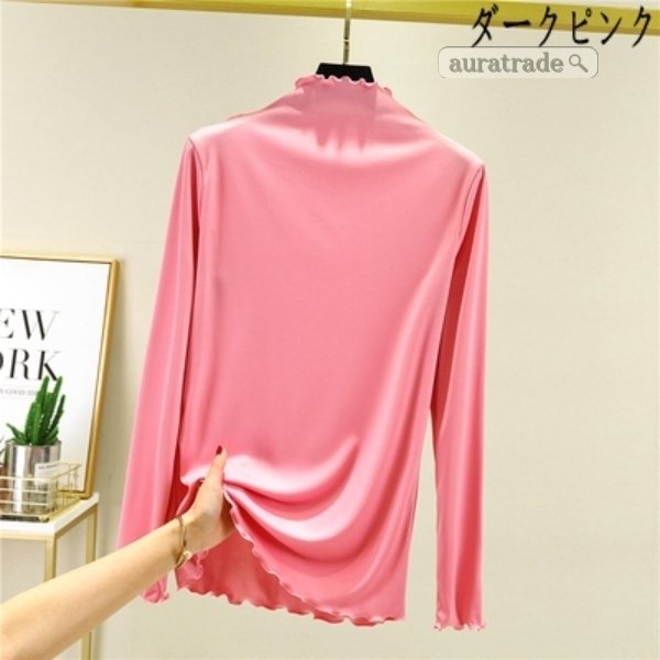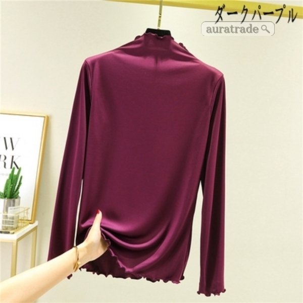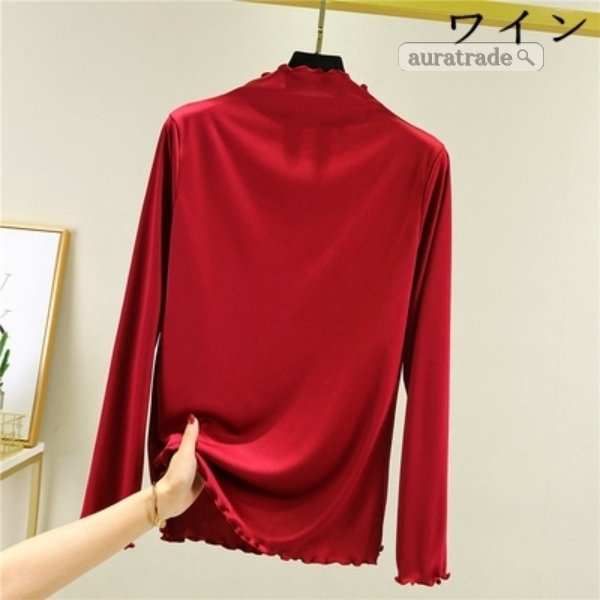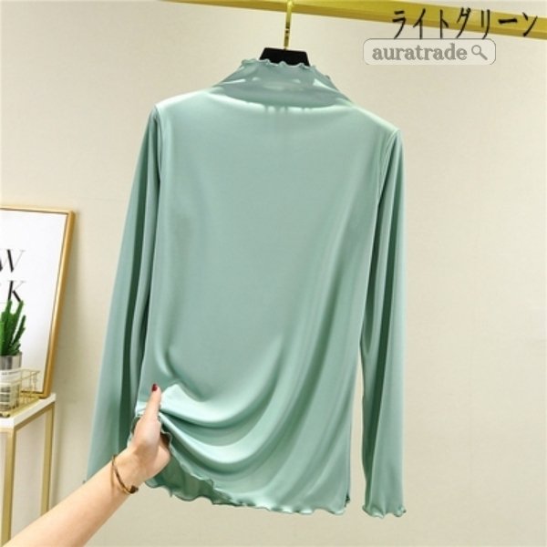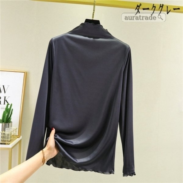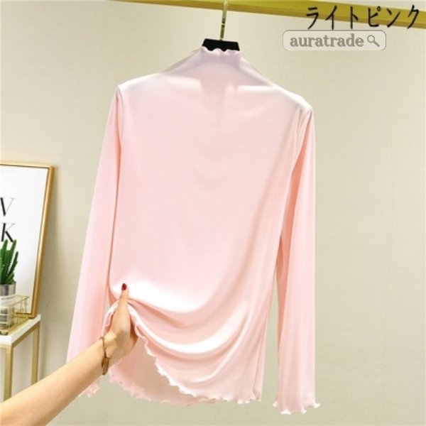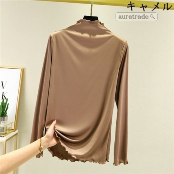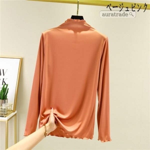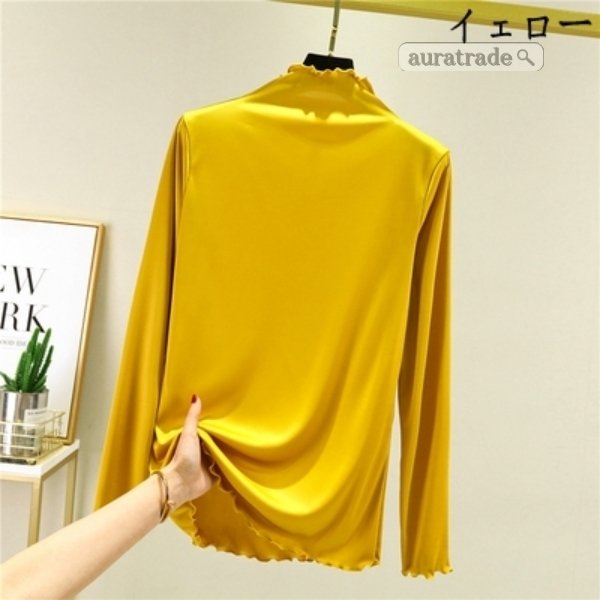 レディース 長袖 Tシャツ 無縫製ハイネック 上着 トップス インナー 日常着