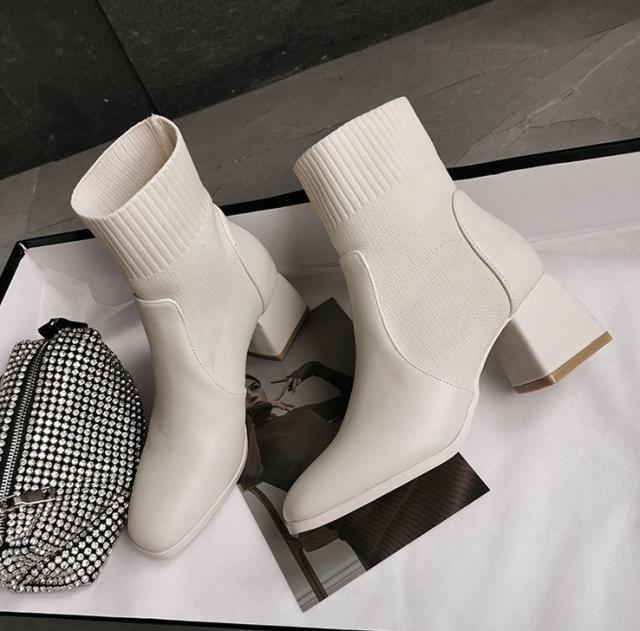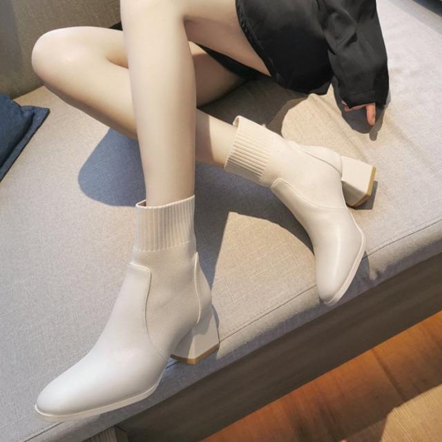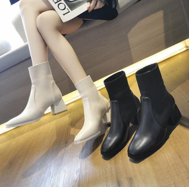 ショートブーツ ソックスブーツ レディース 秋冬 PUブーツ ヒール 靴下ブーツ チャンキーヒール 大きいサイズ 美脚 厚底 疲れない 安定感 歩きやすい