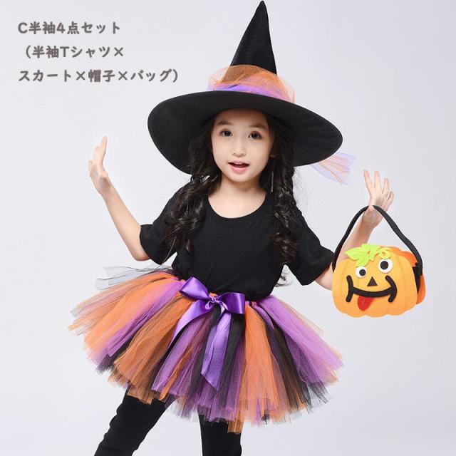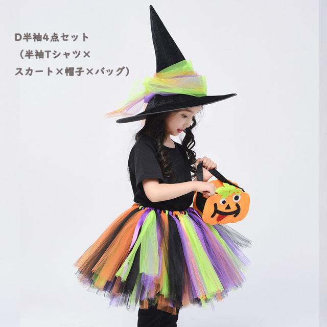 ハロウィン コスプレ 女の子 衣装 魔女 子供 仮装 キッズ スカート コスチューム 洋服 ワンピース 姫系 カラフルドレス 変装 魔法使い キッズ 子どもドレス