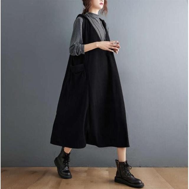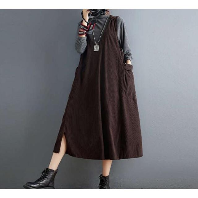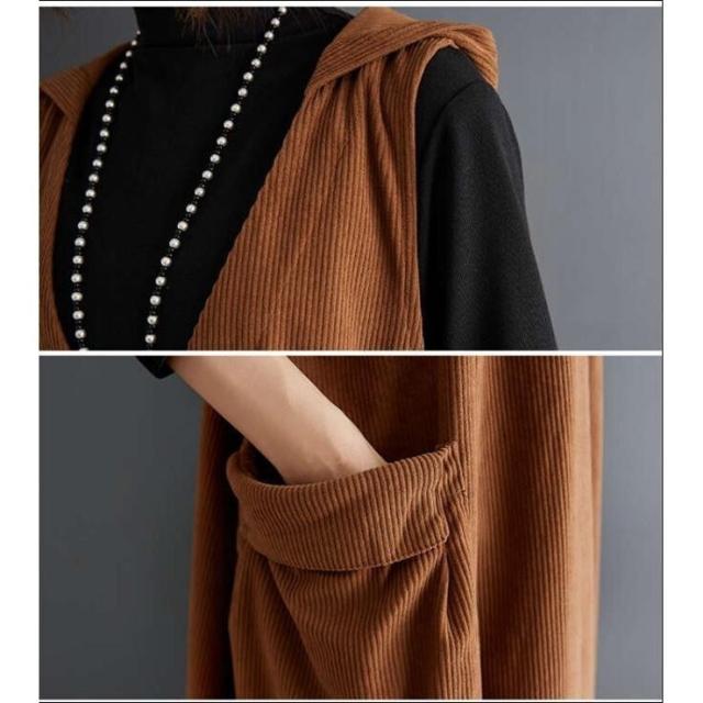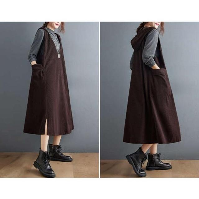 ジャンパースカート サロペット コーデュロイ キャミワンピース ワンピース レディース 秋冬 ワンピース サロペットスカート フード付き 40代 50代