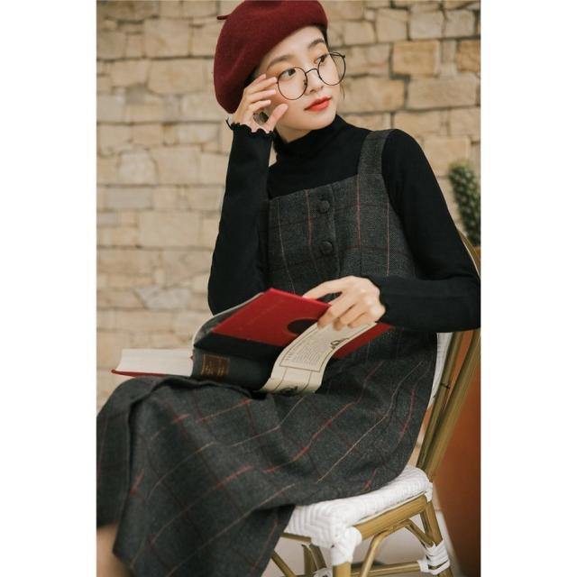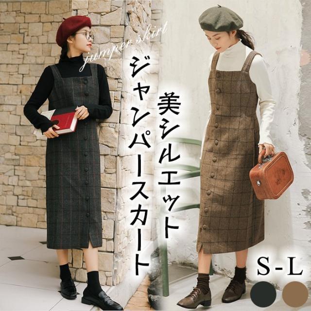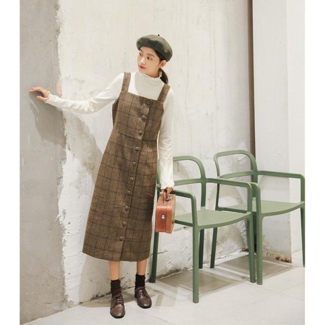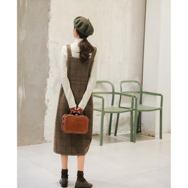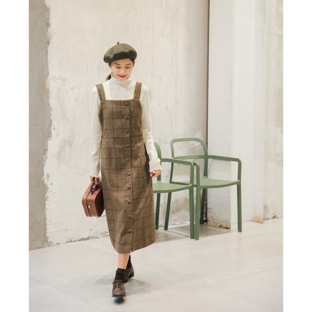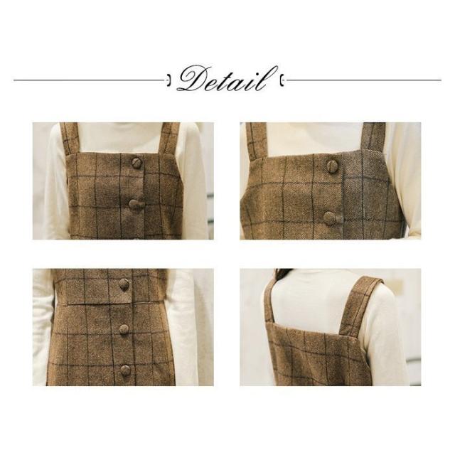 ツイード サロペット キャミワンピース レディース キャミワンピ ミモレ丈 ワンピース サロペットスカート オールインワン シンプル 重ね着 チェック柄 春 秋 冬