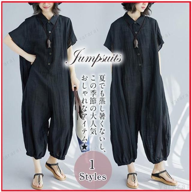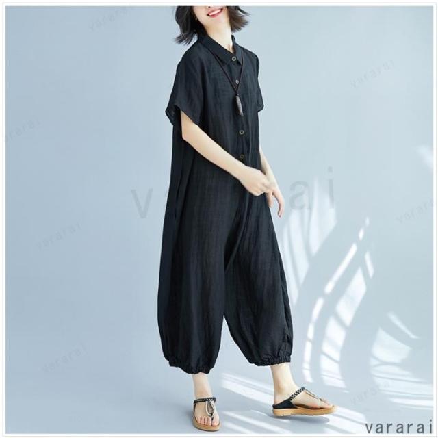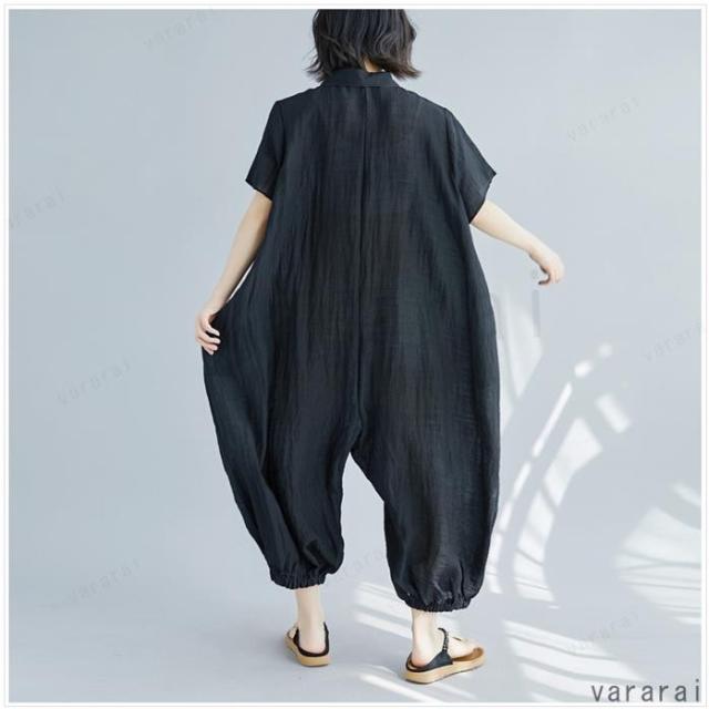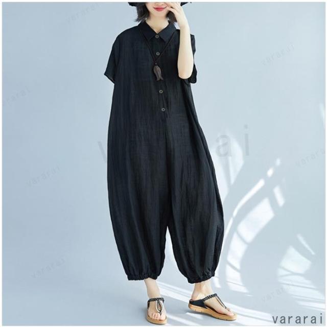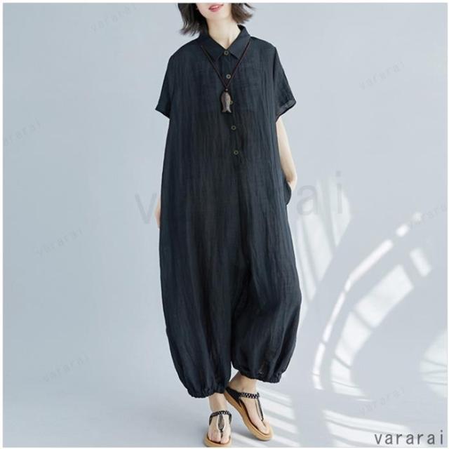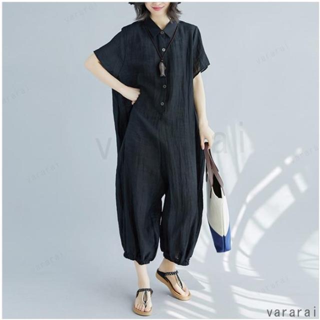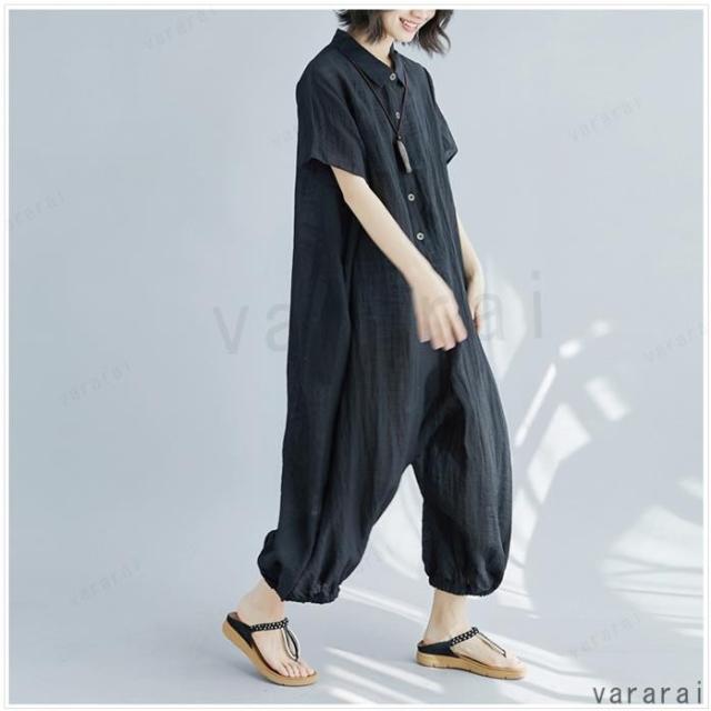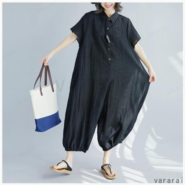 新品 ゆったり 上品 通気性 カジュアル 半袖 大きいサイズ 体型カバー レディース ロンパース