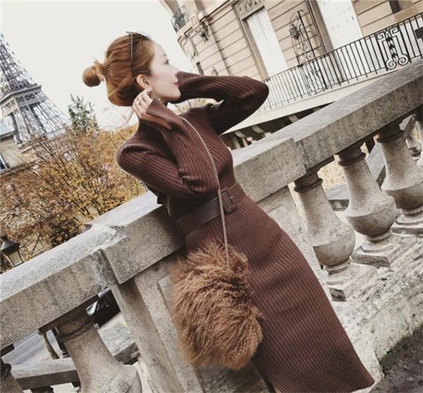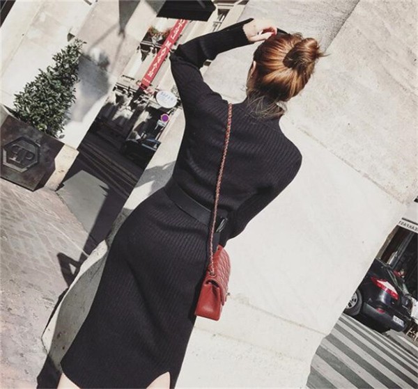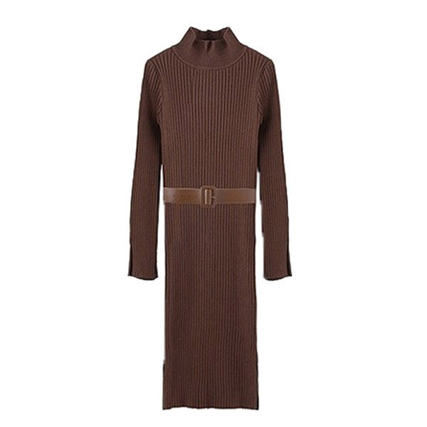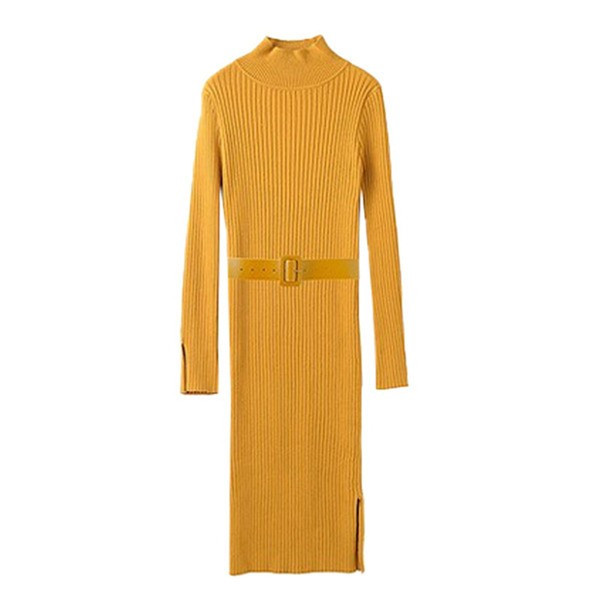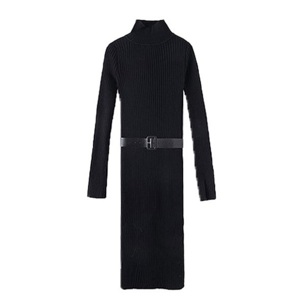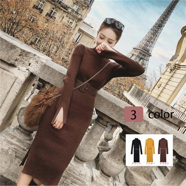 初春セールレディース ニットワンピース ワンピース ロング丈 スリム 長袖 ハイネック リブニット タイト スリット 無地 セクシー 春 秋