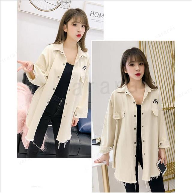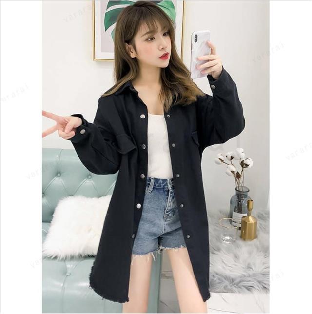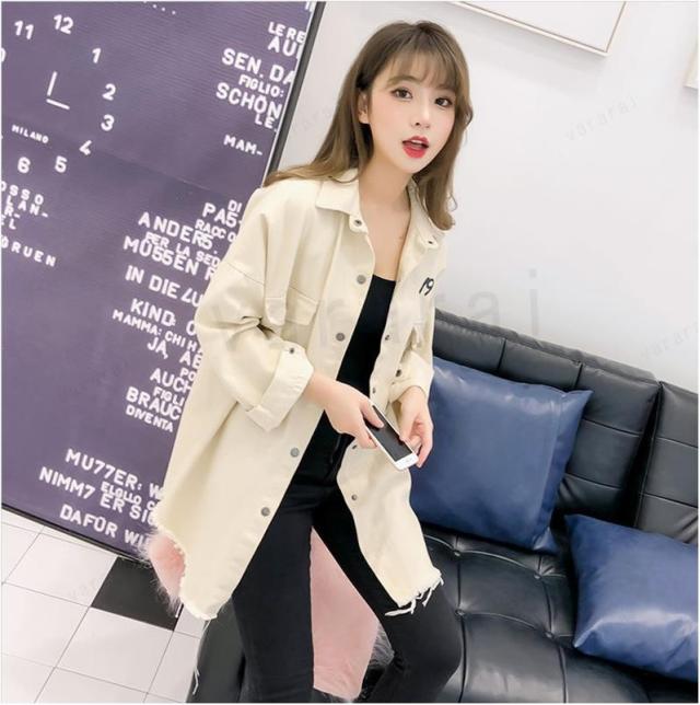 POLOネック 長袖 韓国風 シングルブレストジャケット ポッケト デザイン スプリング ブルー オーバーサイズ 着やせ