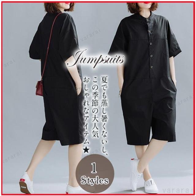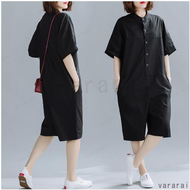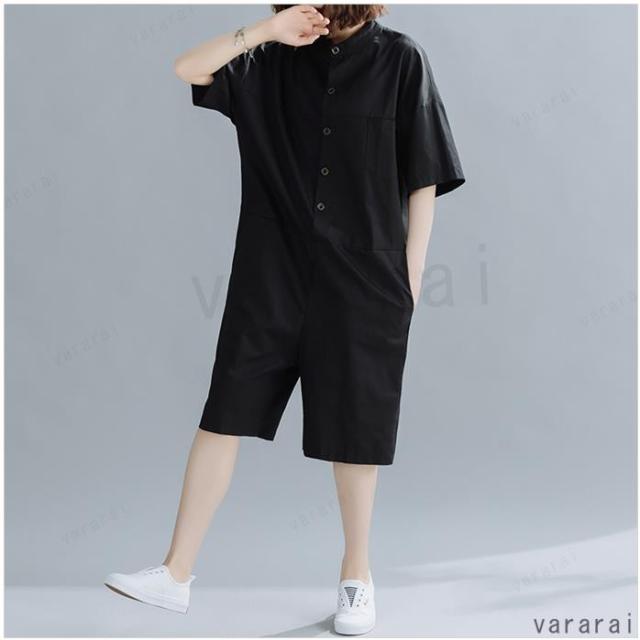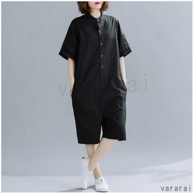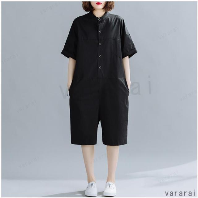 上品 カジュアル 5分袖 ゆったり 大きいサイズ 綿麻 オーバーオール レディース ロンパース