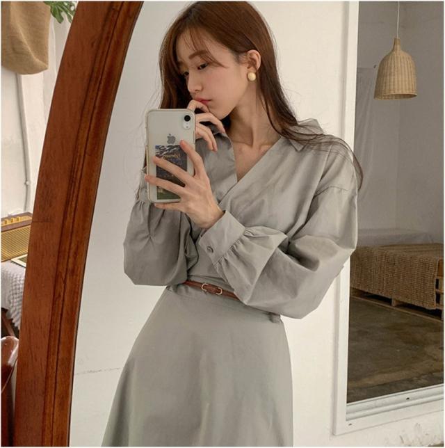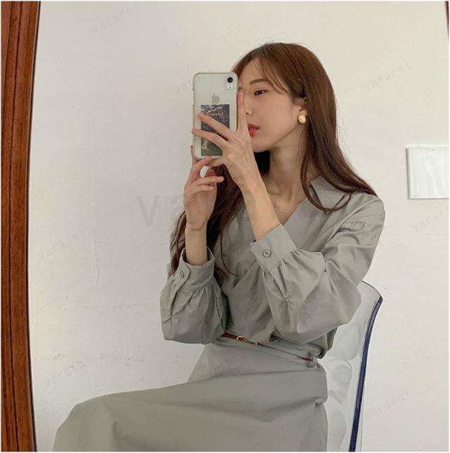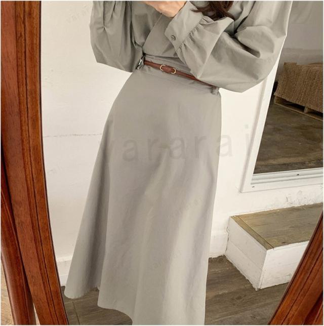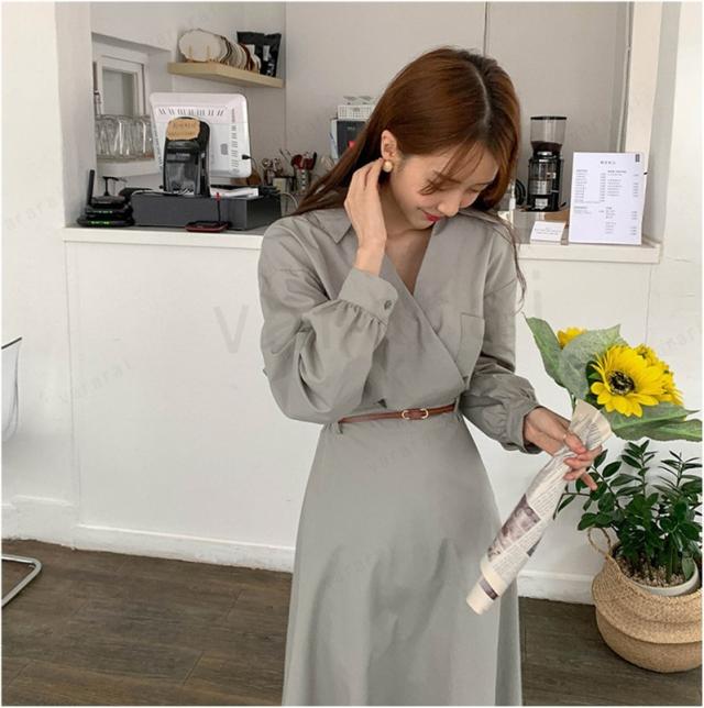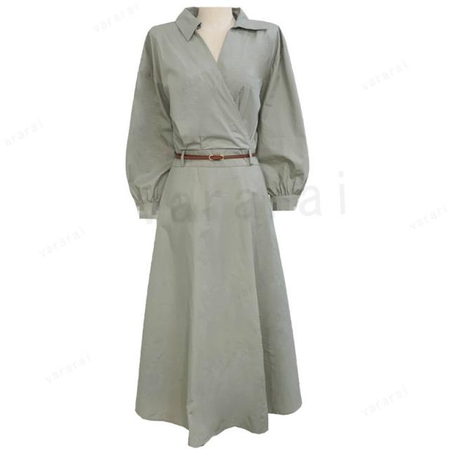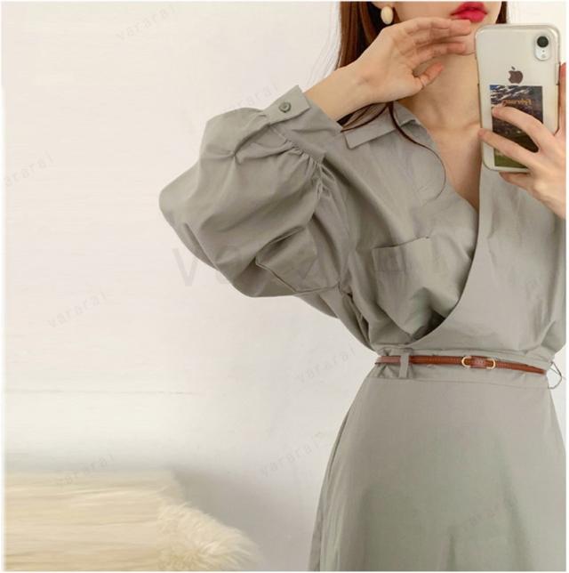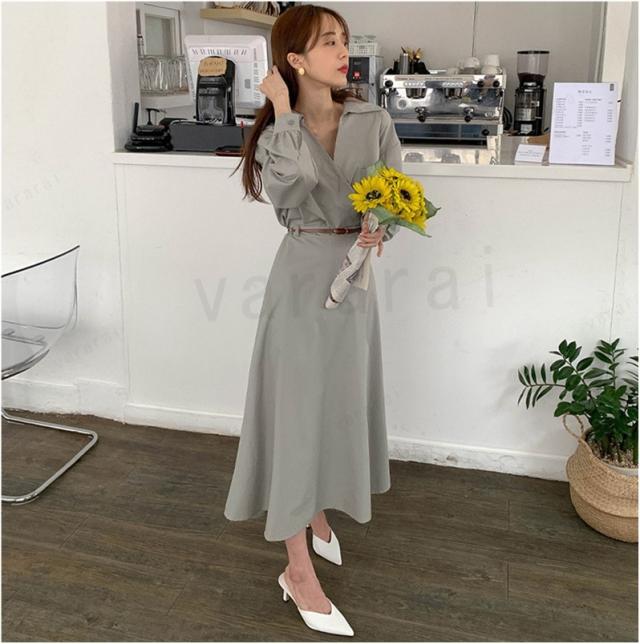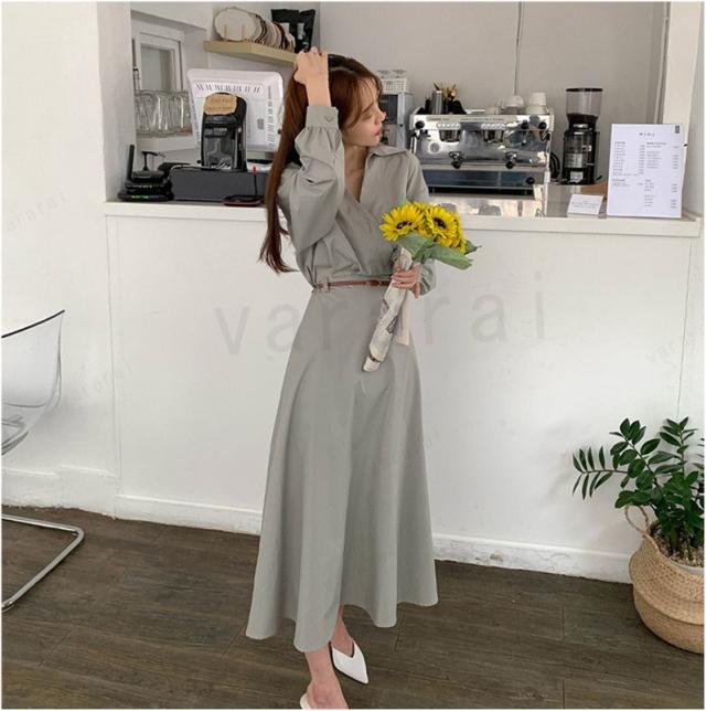 ワンピース 無地 シャツワンピース Vネック チュニック ゆったり 大きいサイズ シンプル 折り襟 長袖 体型カバー オシャレ 通勤 着痩せ春秋夏物