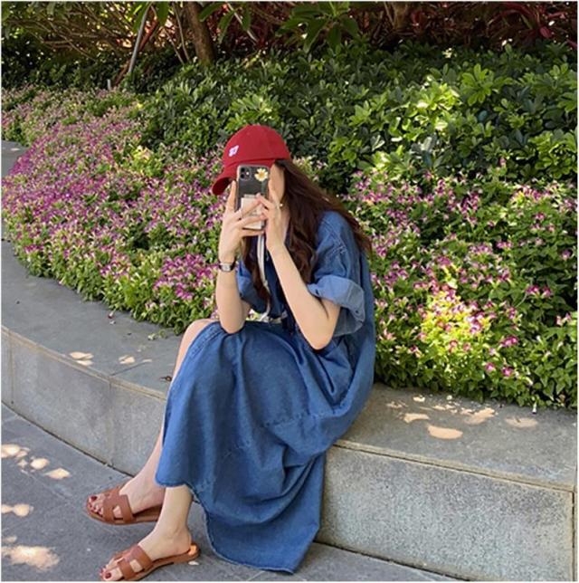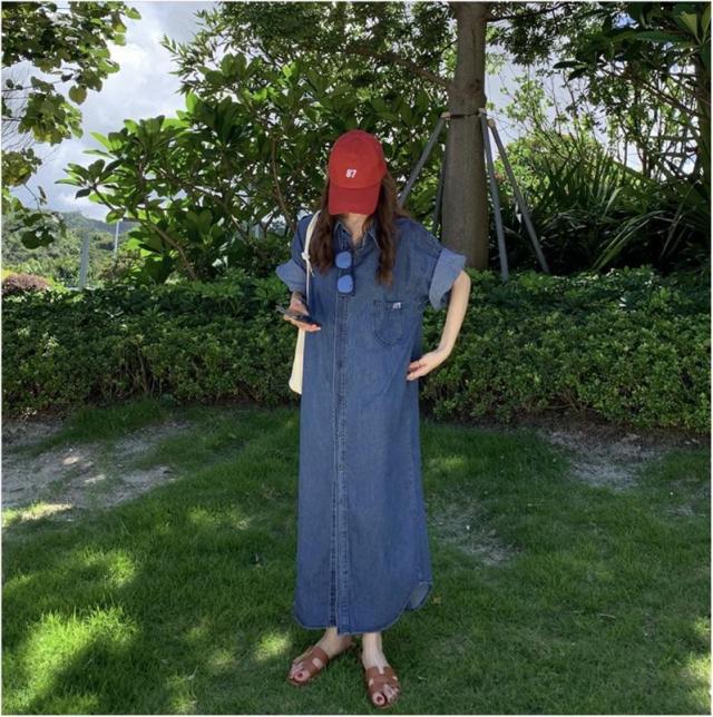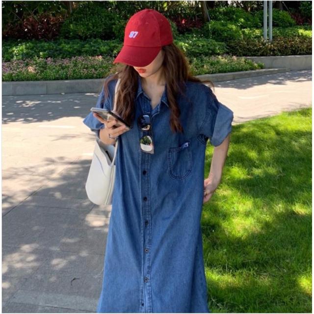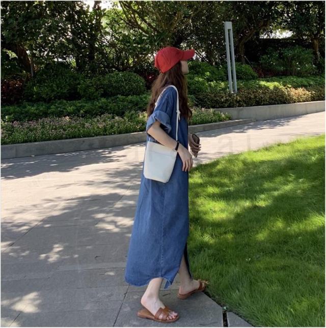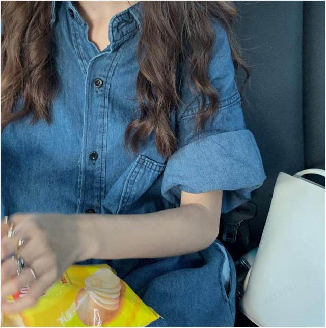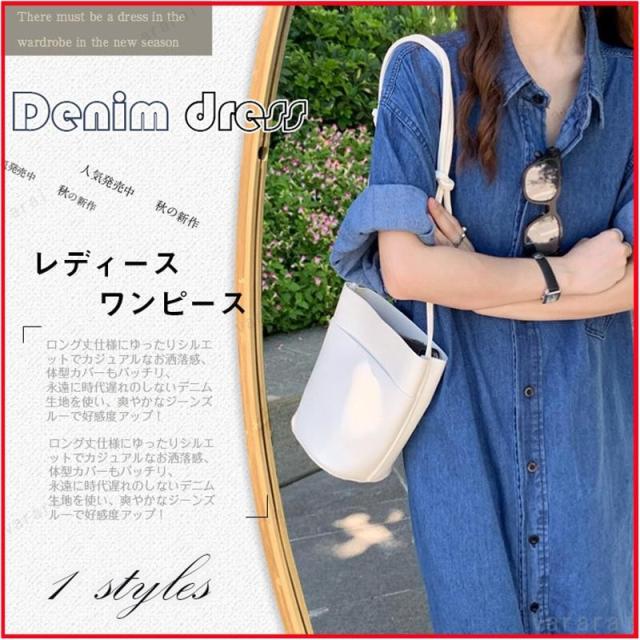 半袖 デニムワンピース ロングシャツ オシャレ ゆったり 体型カバー ベーシック カジュアル デニムコート 通勤 春秋 無地