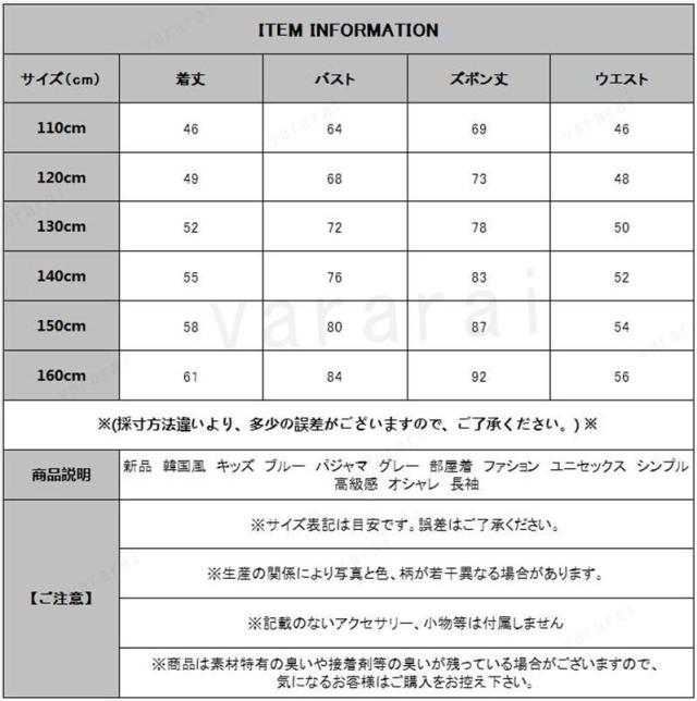 新品 韓国風 キッズ ブルー パジャマ グレー 部屋着 ファション ユニセックス シンプル 高級感 オシャレ 長袖