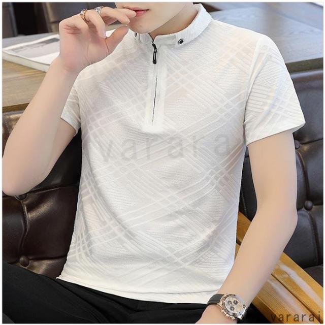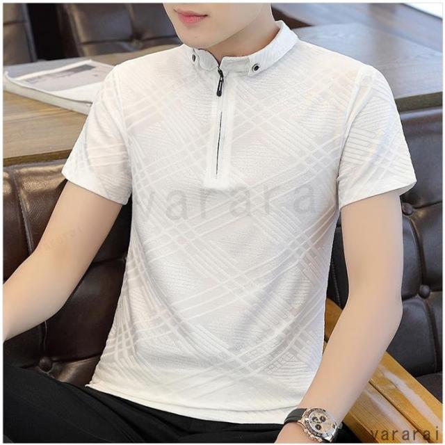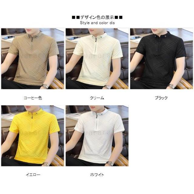 シンプル 全5色 おしゃれ ジッパー 無地 メンズ 通気性 カジュアル 高級感 ビジネス 着痩せ ポロシャツ