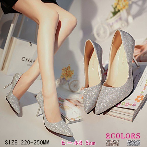 キラキラパンプスピンヒールとんがり結婚式二次会ハイヒールローヒールレディースヒール8.5cmオフィス歩きやすい美脚痛くない