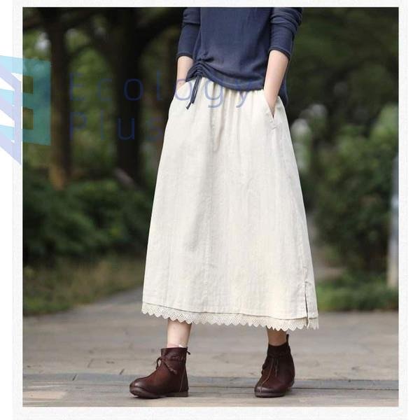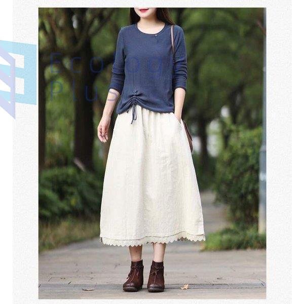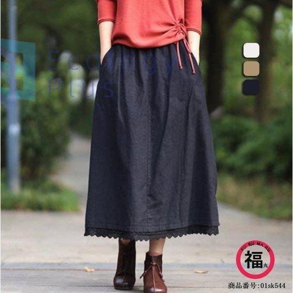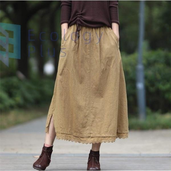 スカート ロングスカート フレアスカート ロンスカ レディース ロング マキシ丈 ハイウエスト ウエストゴム 綿麻 無地 ゆったり ゆると 体型カバー 夏 30代