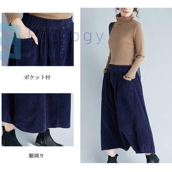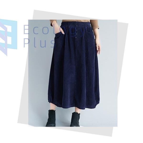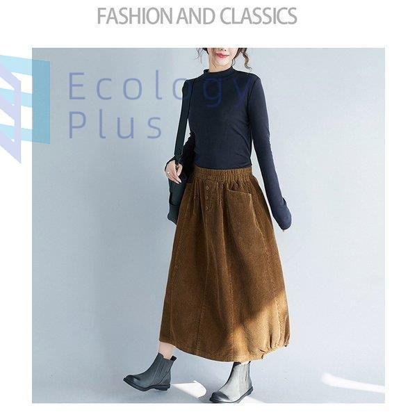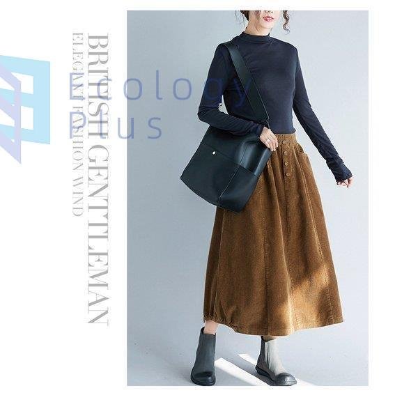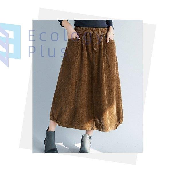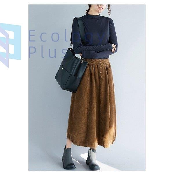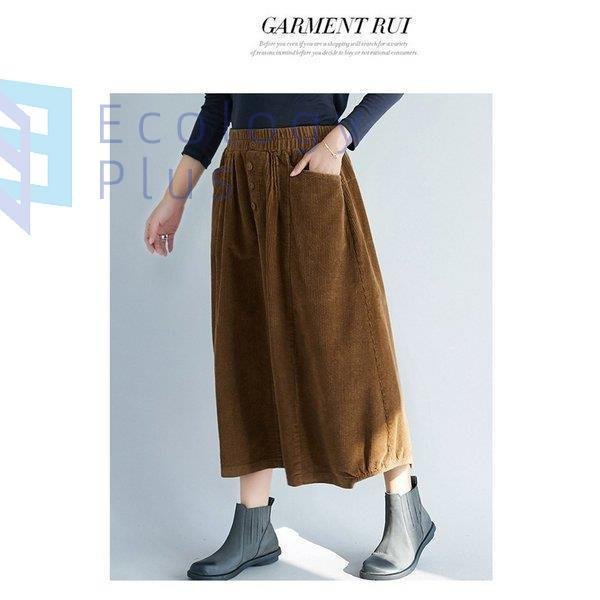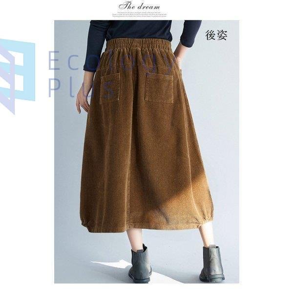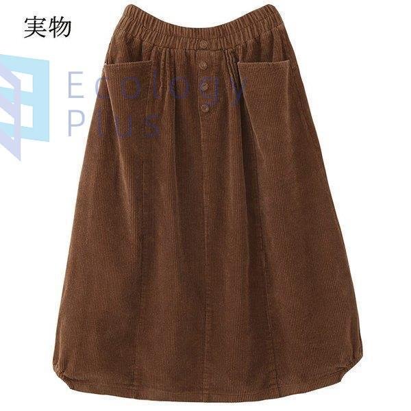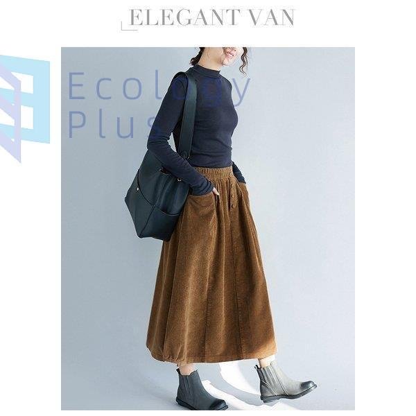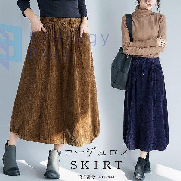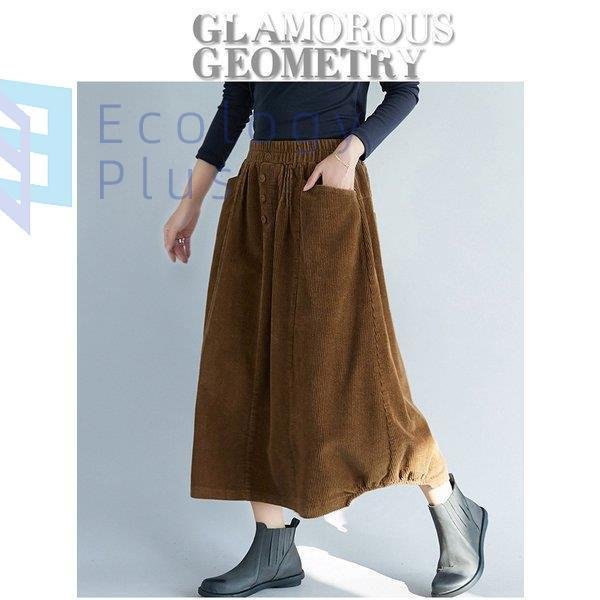 スカート 秋冬 コーデ ロング レディース ウエストゴム ロング丈 ボトムス コーデュロイ フレアスカート 体型カバー デザイン 無地 aライン ポケット付 40代