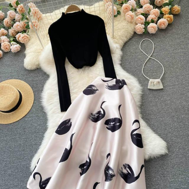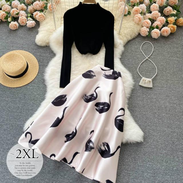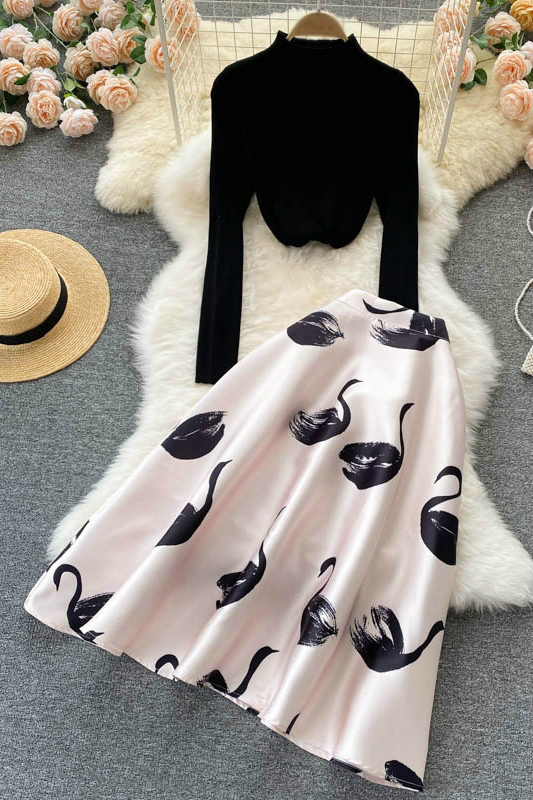 アンサンブル トップス スカート レディース レディースファッション ニット ハイネック フェミニン ブラック ピンク繊細 レディース 美人 リラックス