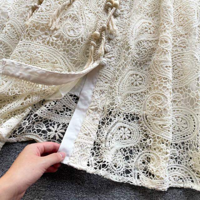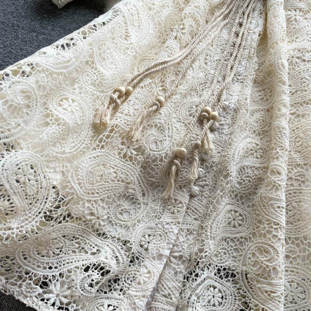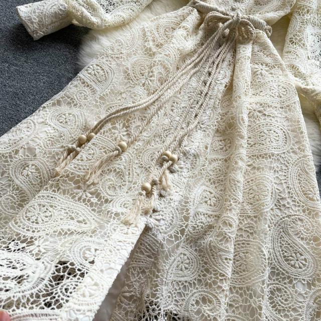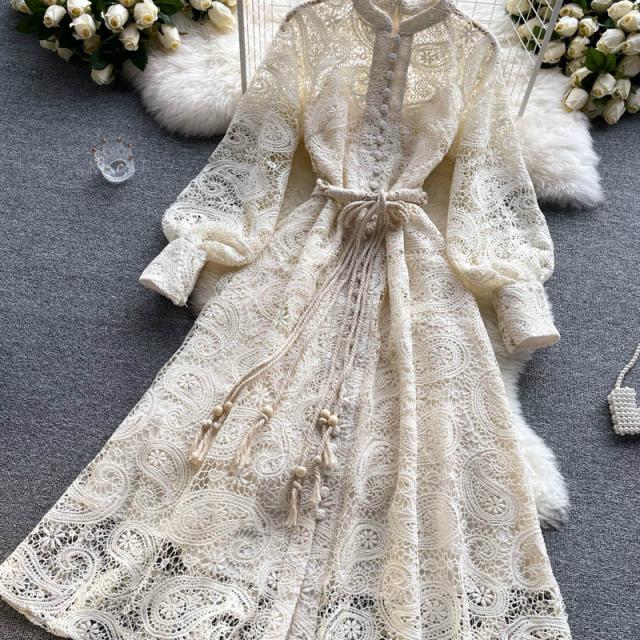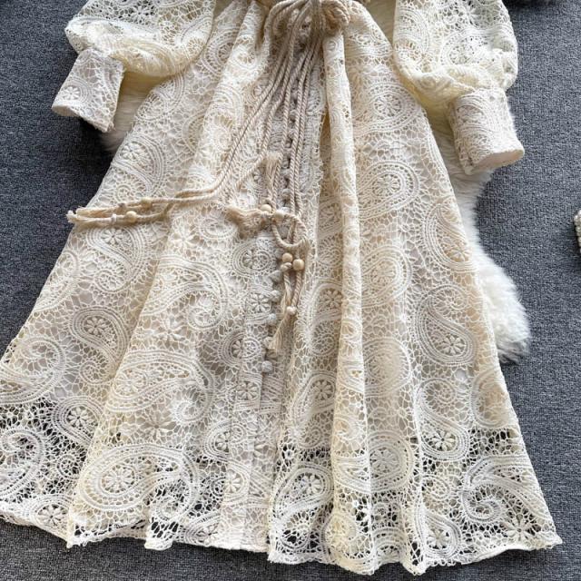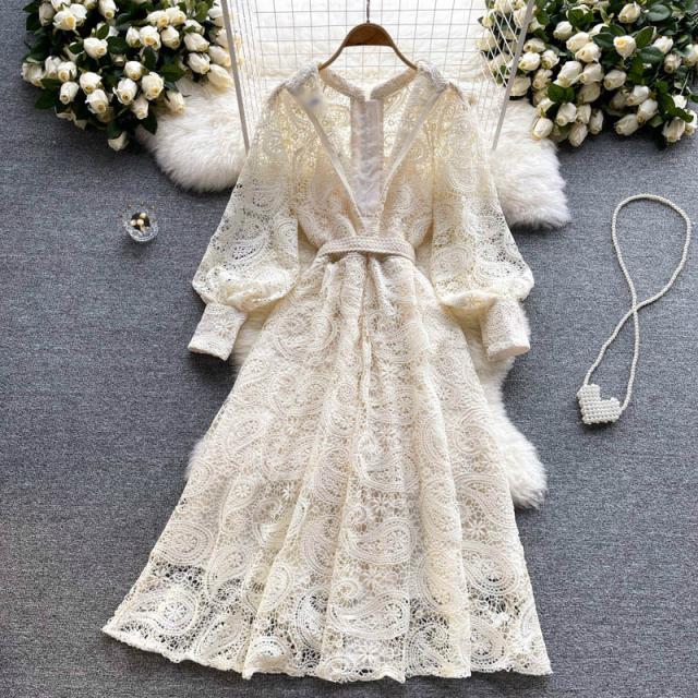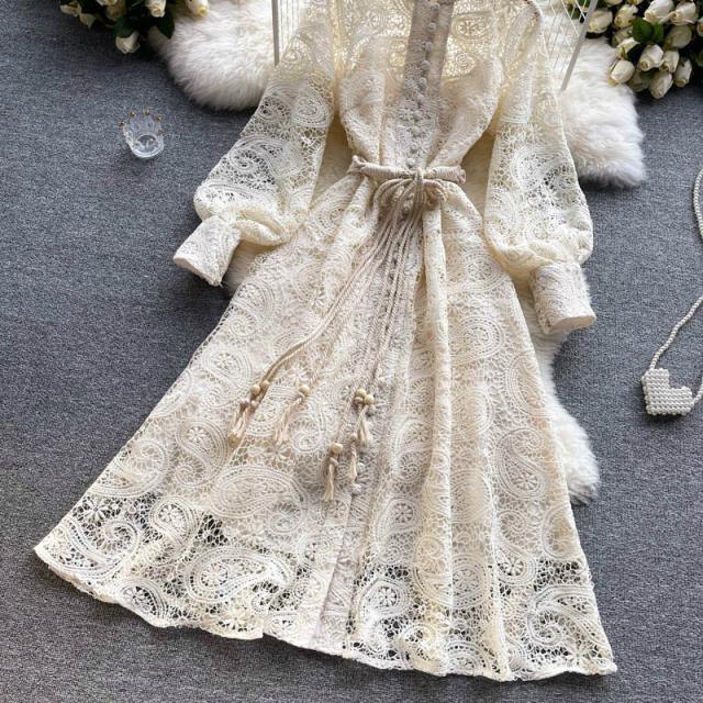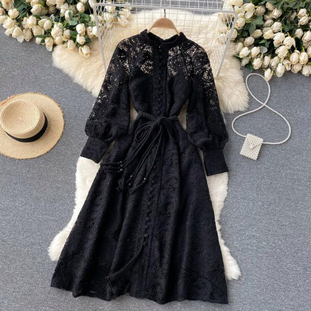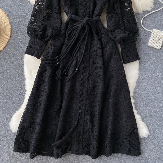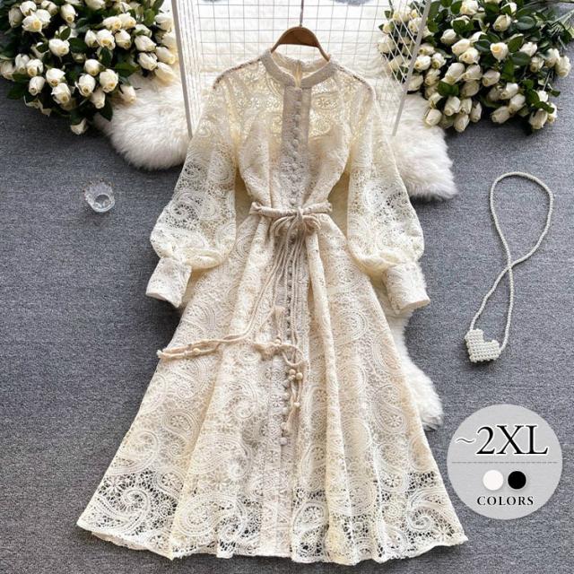 ワンピース スカート レディース レディースファッション 長袖 ウエストリボン レース ロング丈 ブラック ホワイトミセス レディース シャビーシック