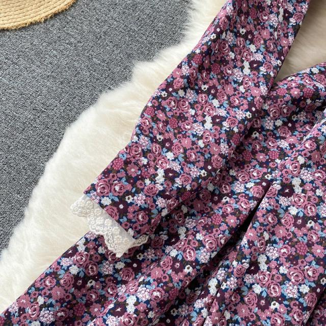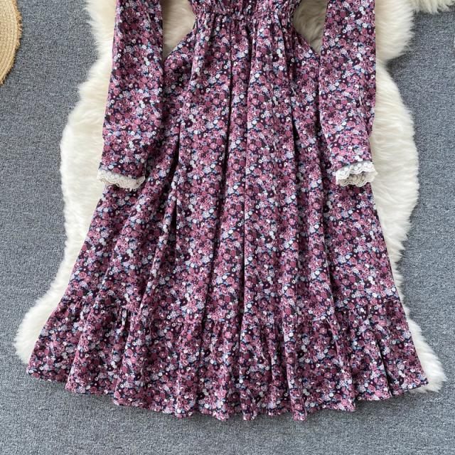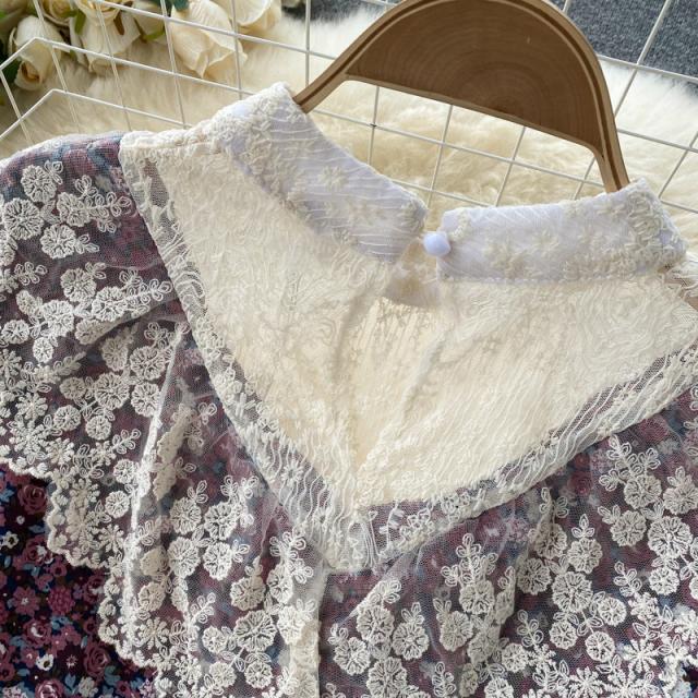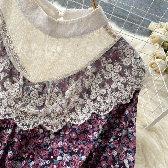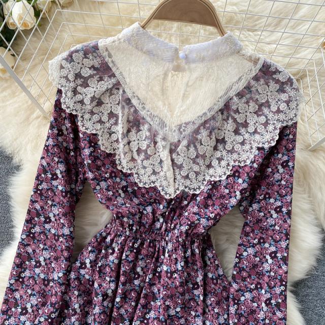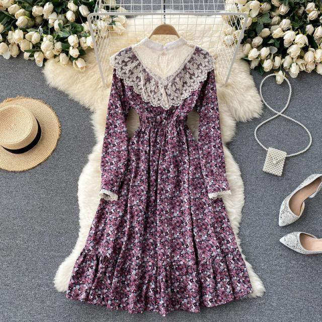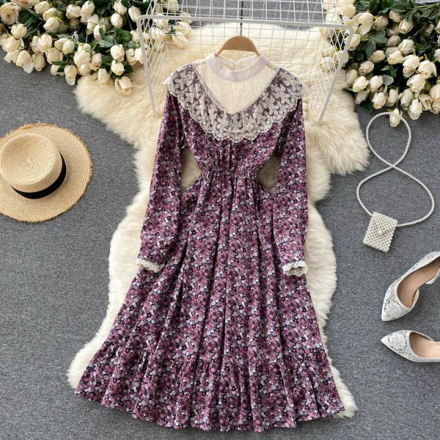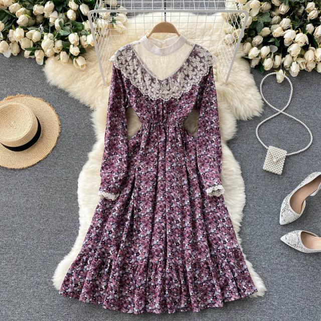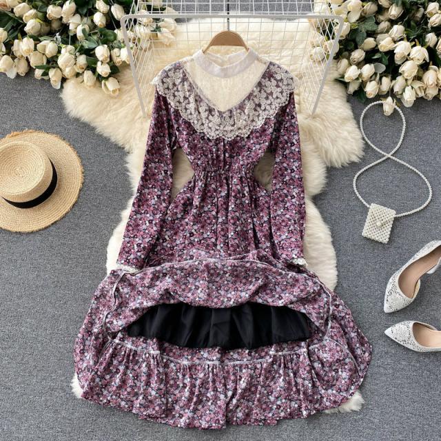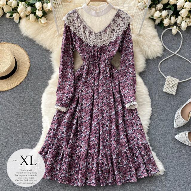 ワンピース スカート レディース レディースファッション 長袖 ロング丈 レース 花柄 肌見せ パープルモダン ベーシック イベント清楚 ナチュラル