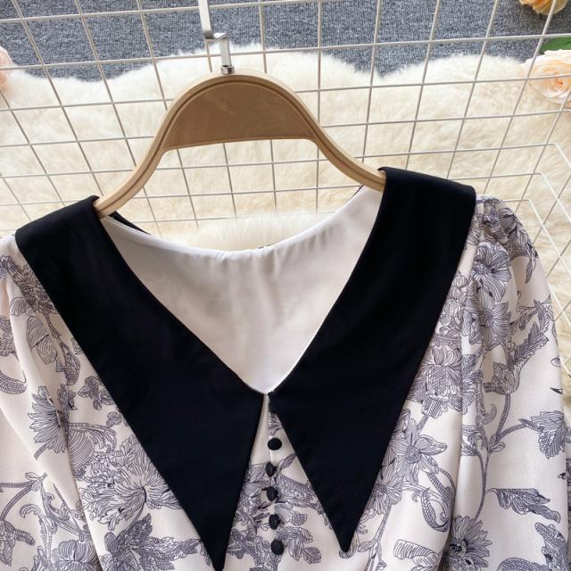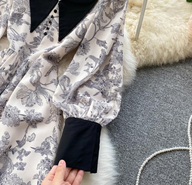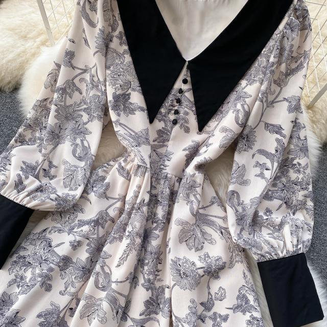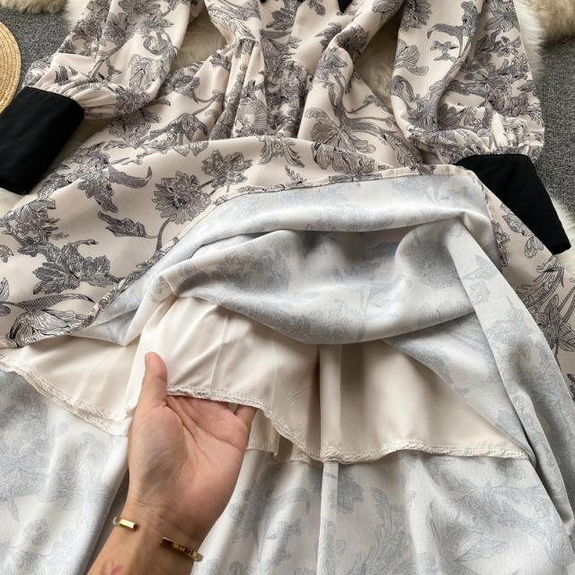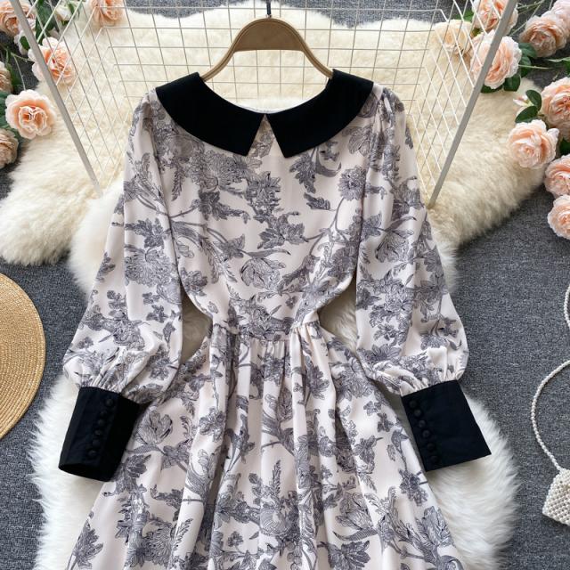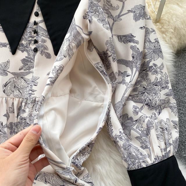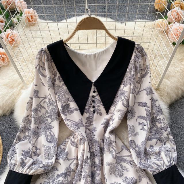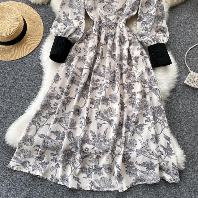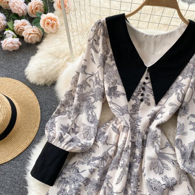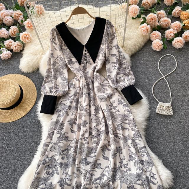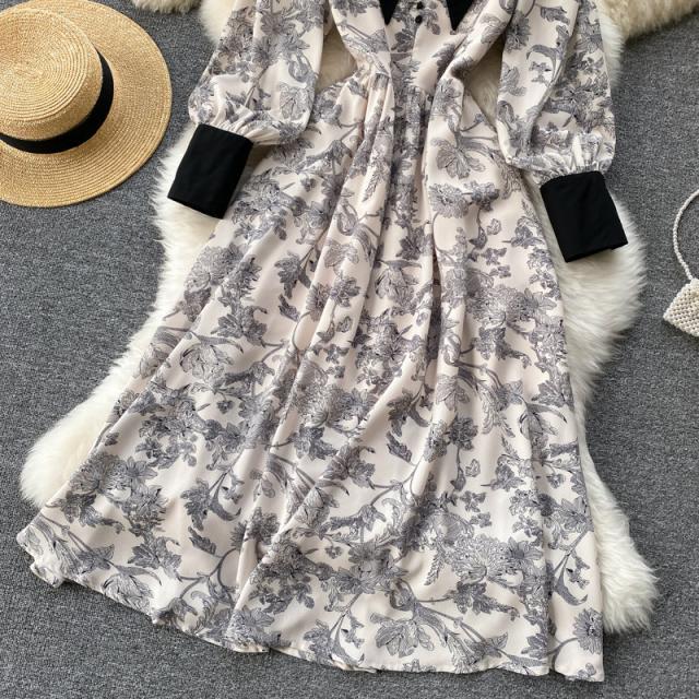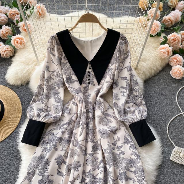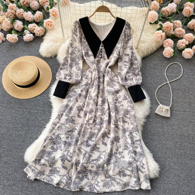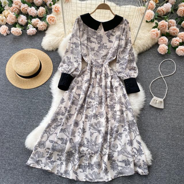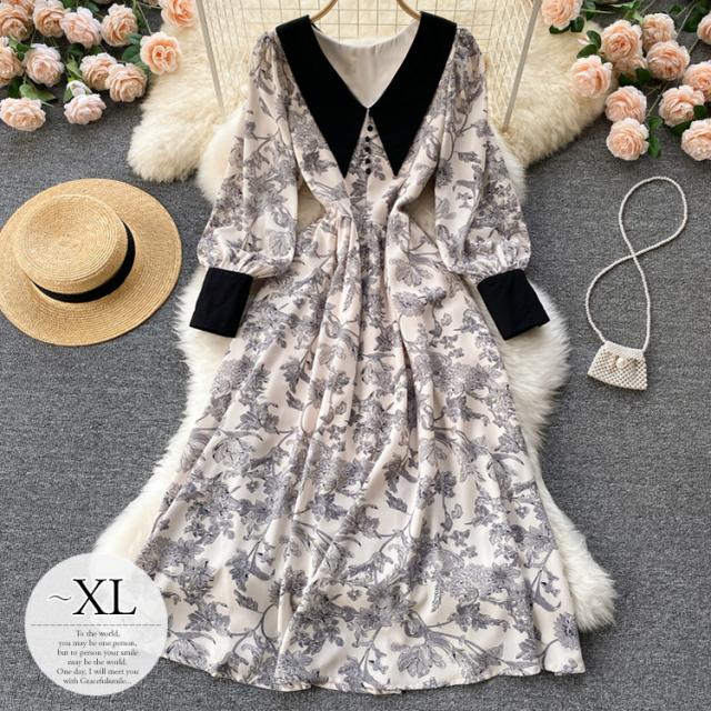 ワンピース スカート レディース レディースファッション 長袖 ロング丈 襟付き 花柄 フェミニン ベージュお出かけ イベント お洒落/