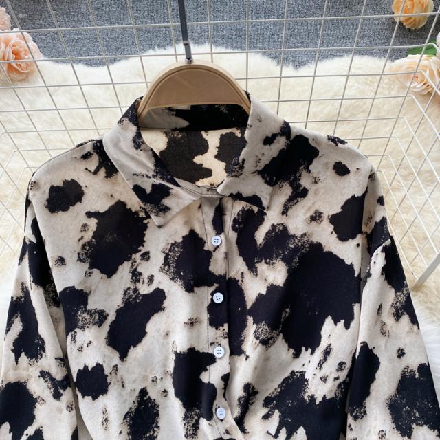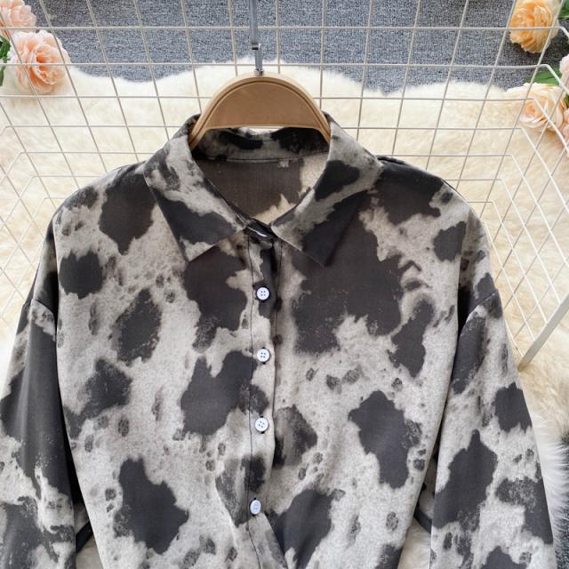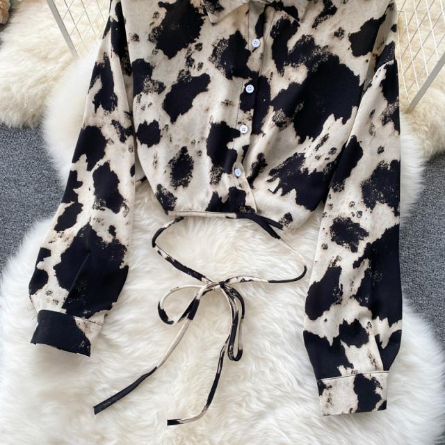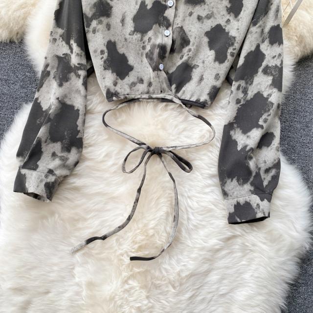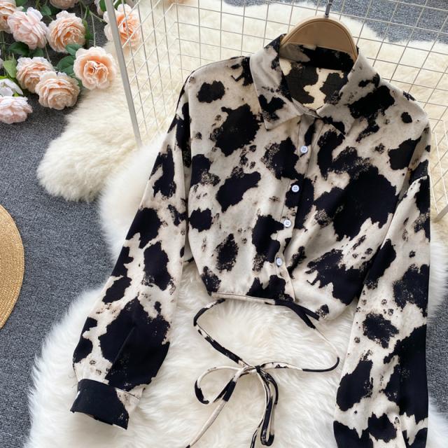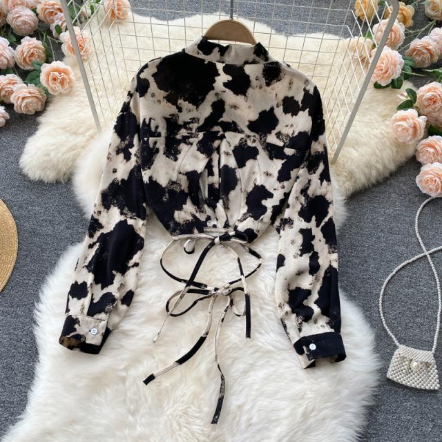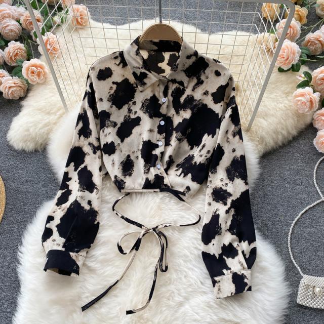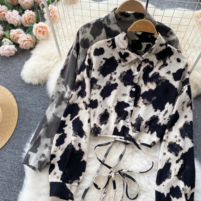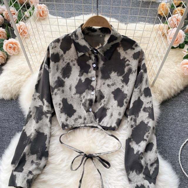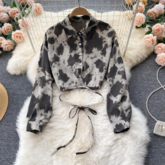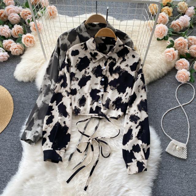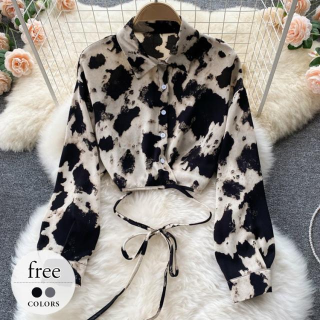 ブラウス トップス レディース レディースファッション 長袖 ショート丈 襟付き 柄 総柄 ブラック グレーナチュラル 魅力的 シャビーシック お出かけ