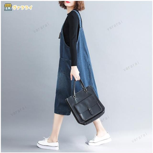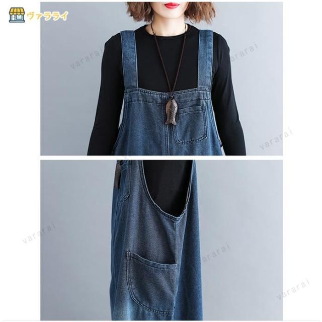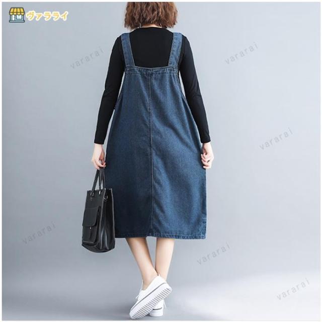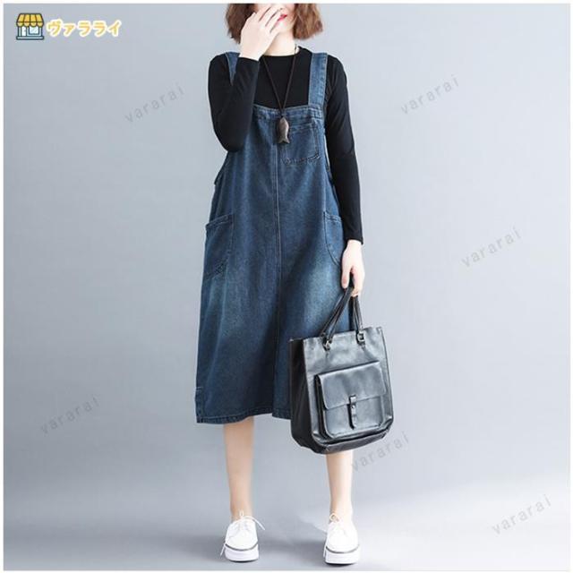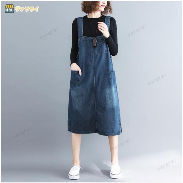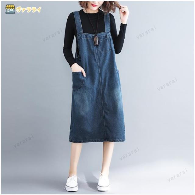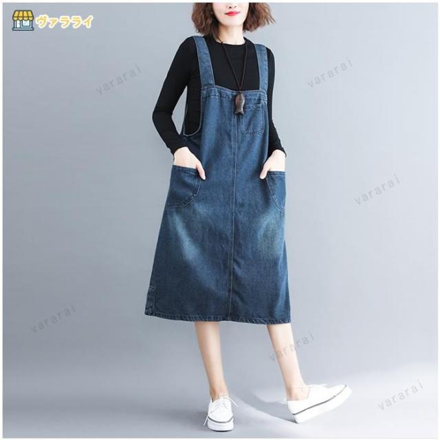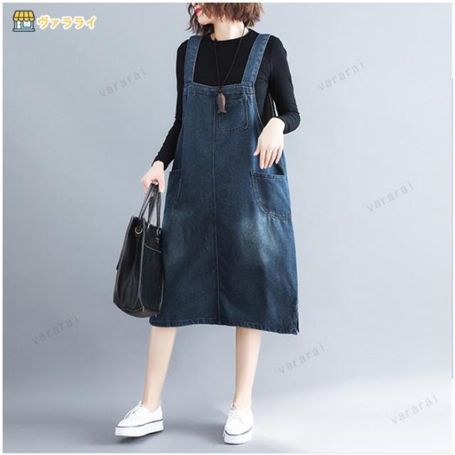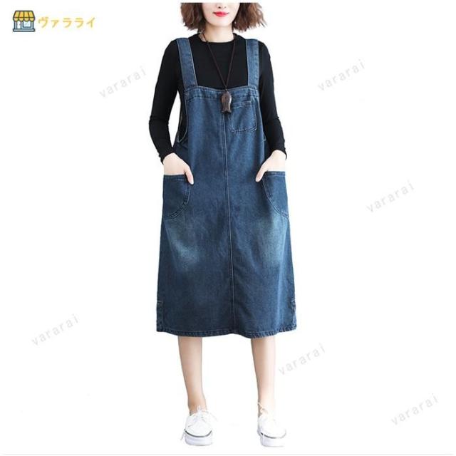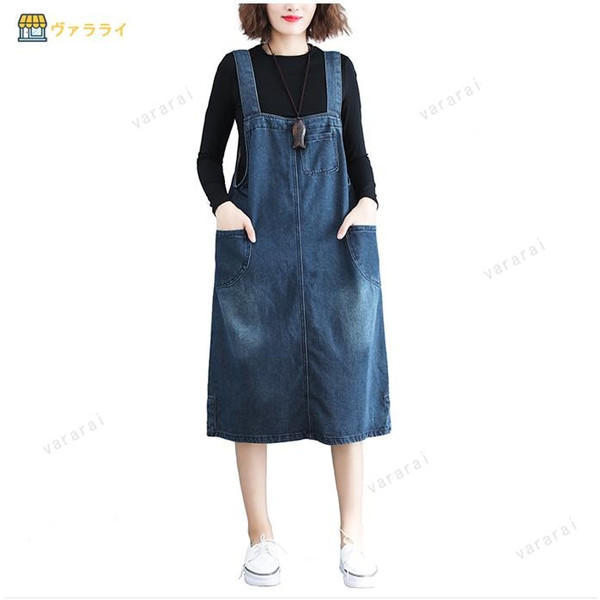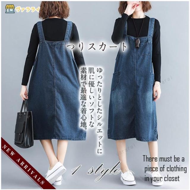 新品 デニム サスペンダースカート ゆったり 外ポケット付き レディース 通勤 通学 つりスカート 吸汗