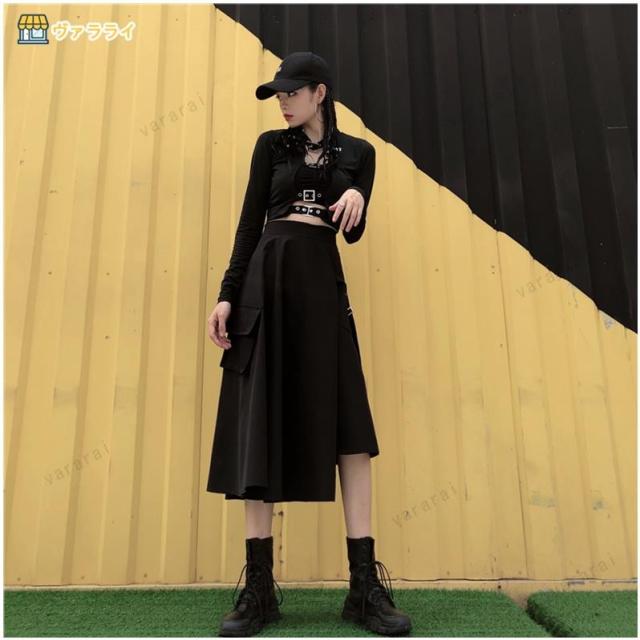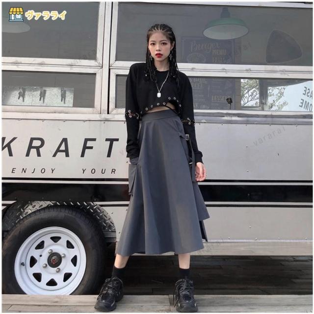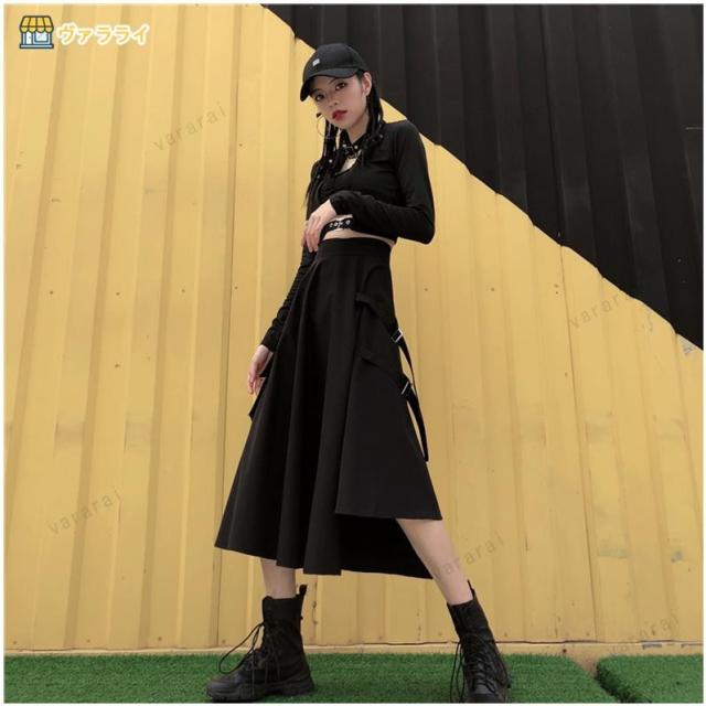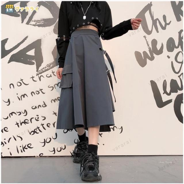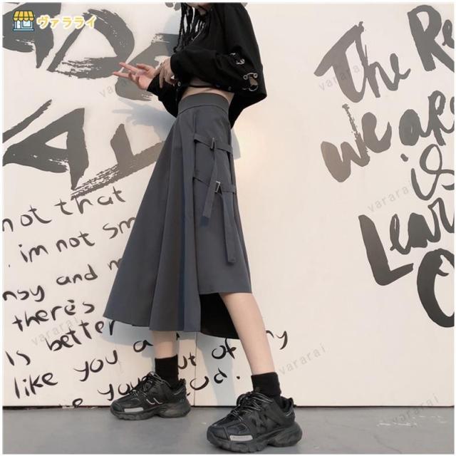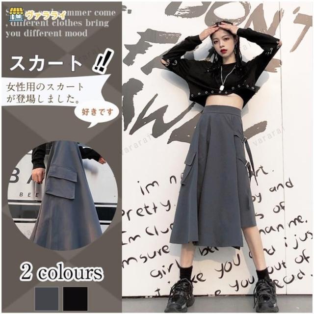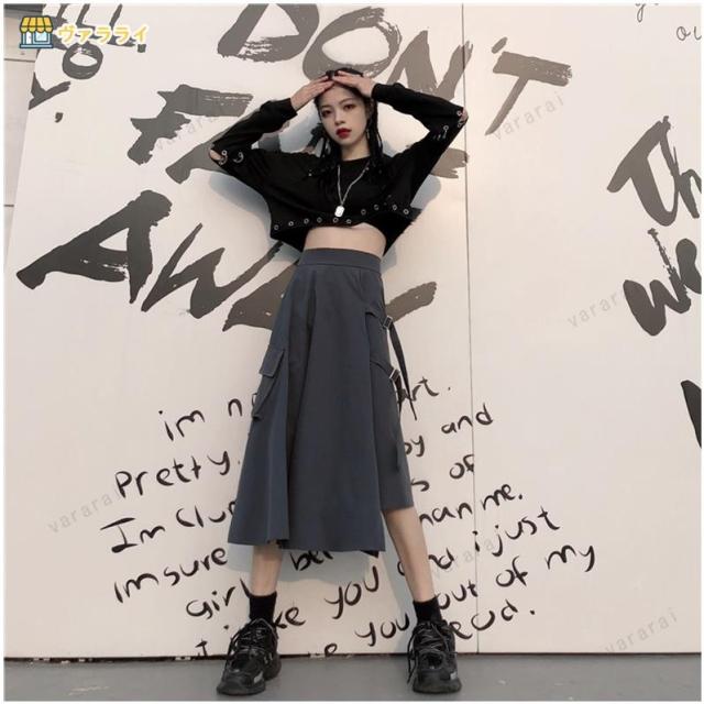 ins風 ストリート系 原宿系 春夏新作 ロング ミドル丈スカート Aライン レディース 夏物 涼しい 2021新作 プリーツデザイン