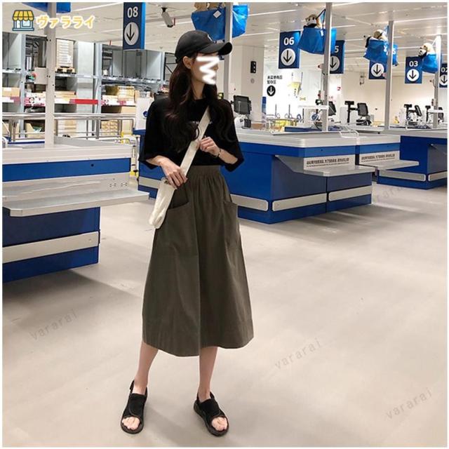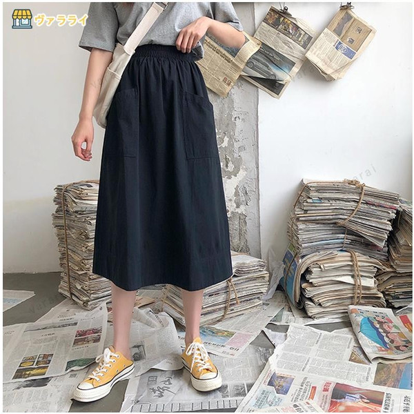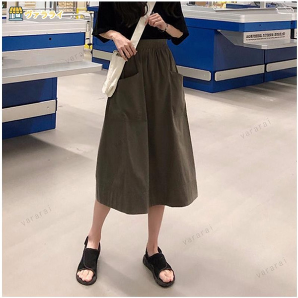 2021新作 夏物 ロング ミドル丈スカート レディース ハイウエスト 原宿系 ロング丈 大人可愛い スカート