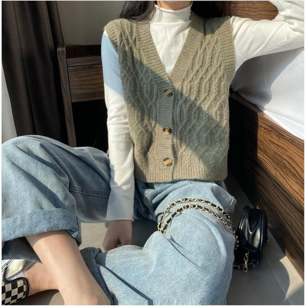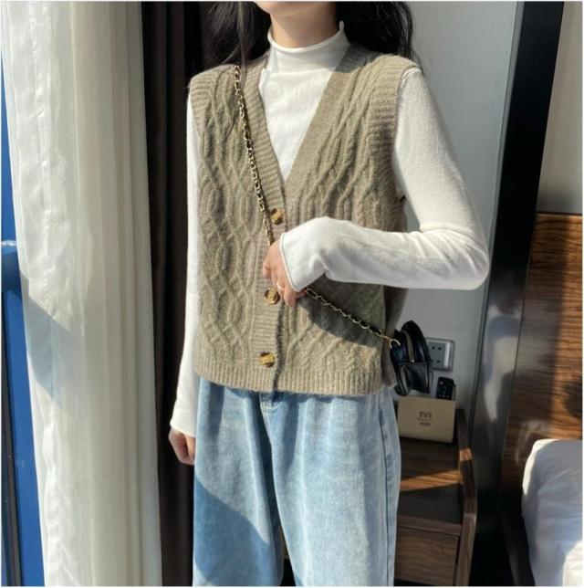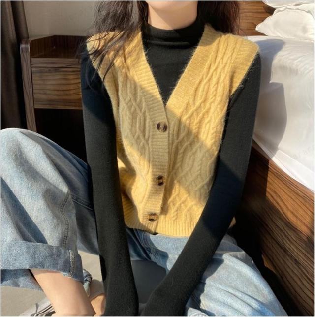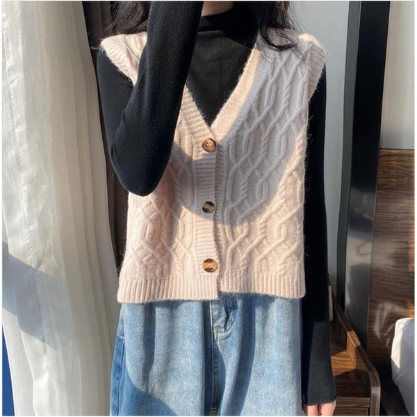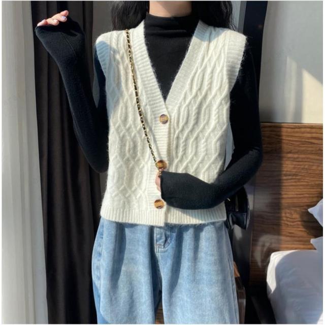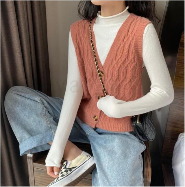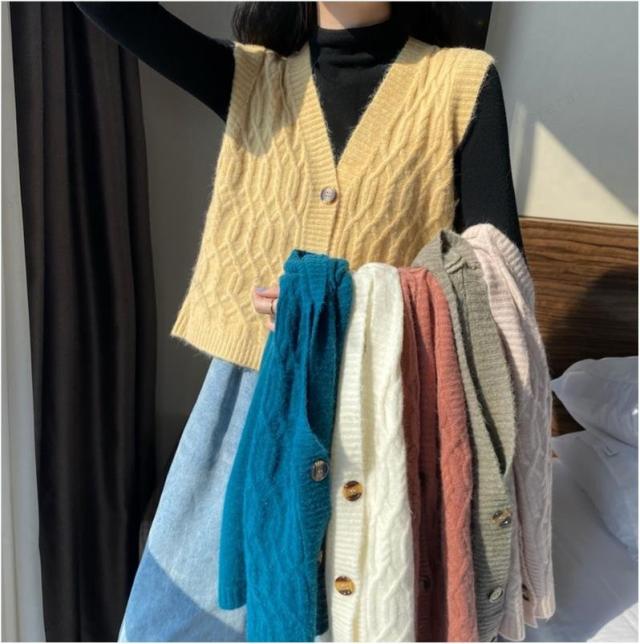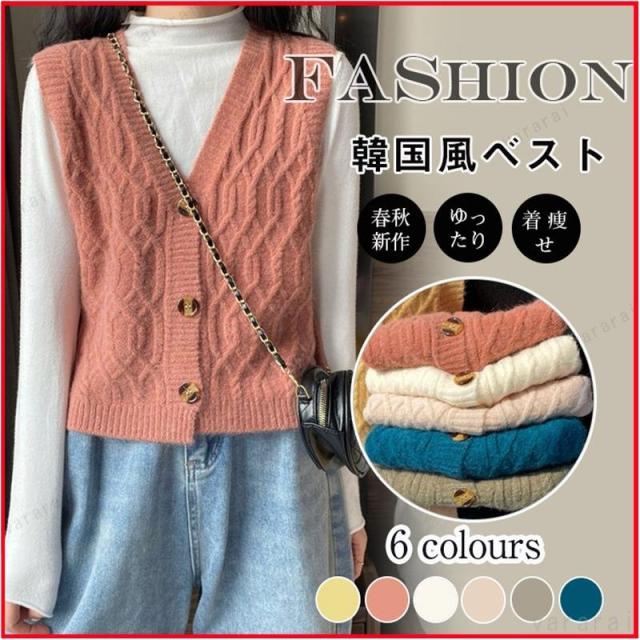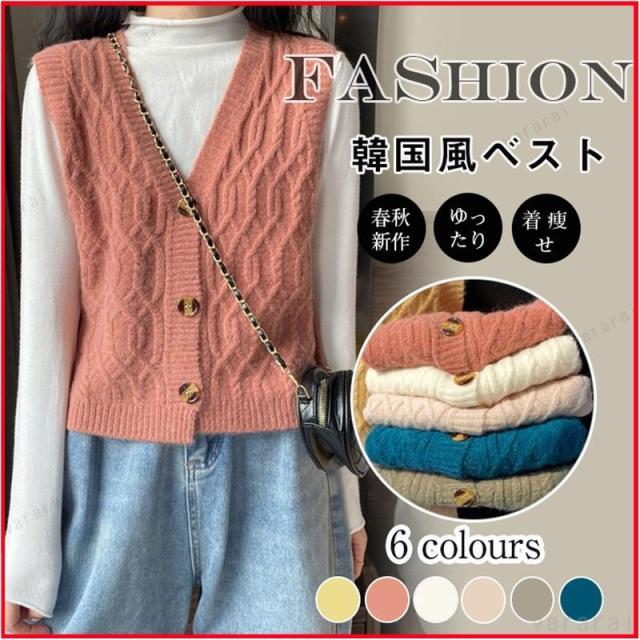 ニットカーディガン 韓国風 ショート Vネック ベスト 20代 秋 ノースリーブ ジャケット ボタン レディース