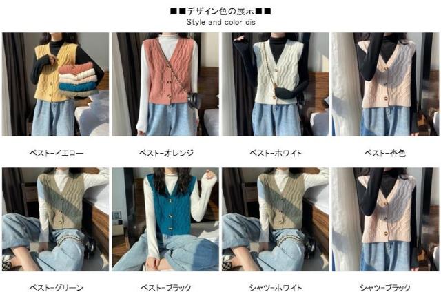 | 色 | ベスト-イエロー ベスト-オレンジ ベスト-ホワイト ベスト-杏色 ベスト-グリーン ベスト-ブラック シャツ-ホワイト シャツ-ブラック |