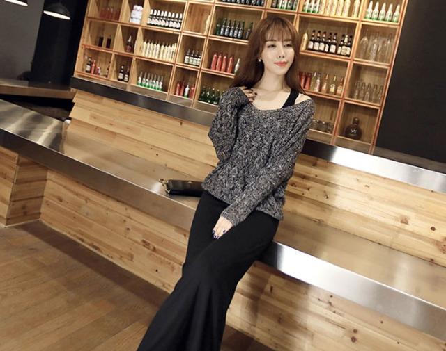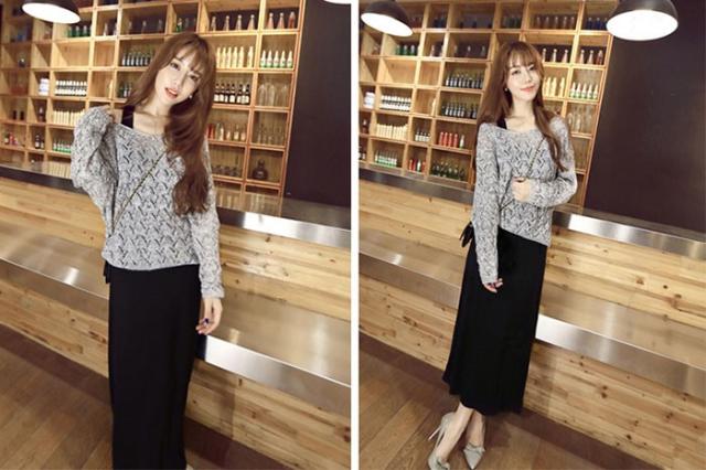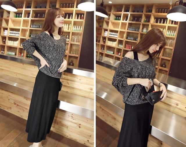 ニットセットアップ 長袖ニットトップス レディース リゾートキャミワンピース 韓国風ニット vネック タイトワンピース夏秋 2点セット レディースお洒落