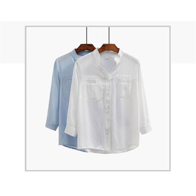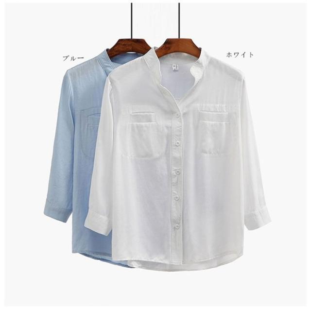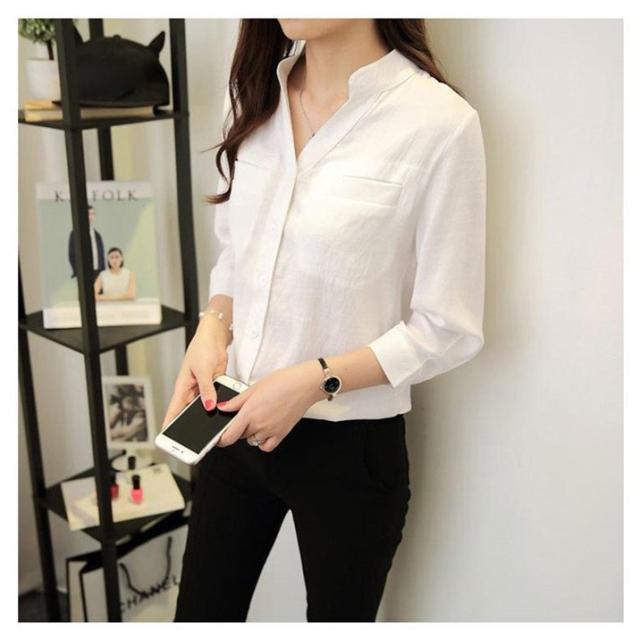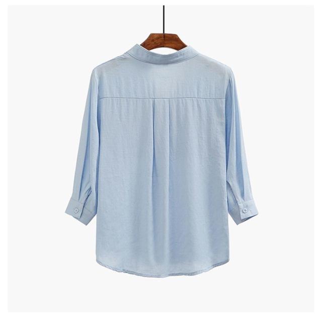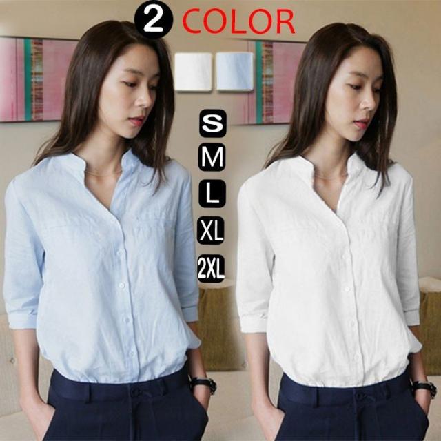 ブラウス オフィス 襟付きブラウスシャツレディース綿麻 vネックシャツ夏 ブラウストップス シャツ新品S〜XXL事務服 オーバーブラウス