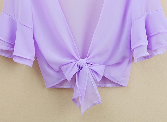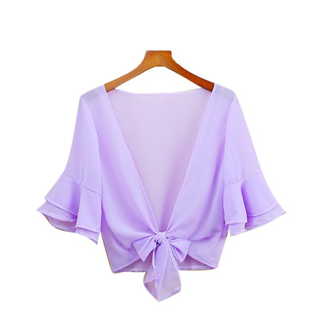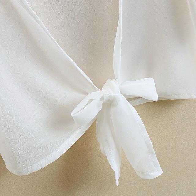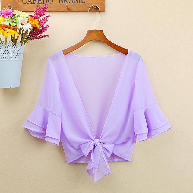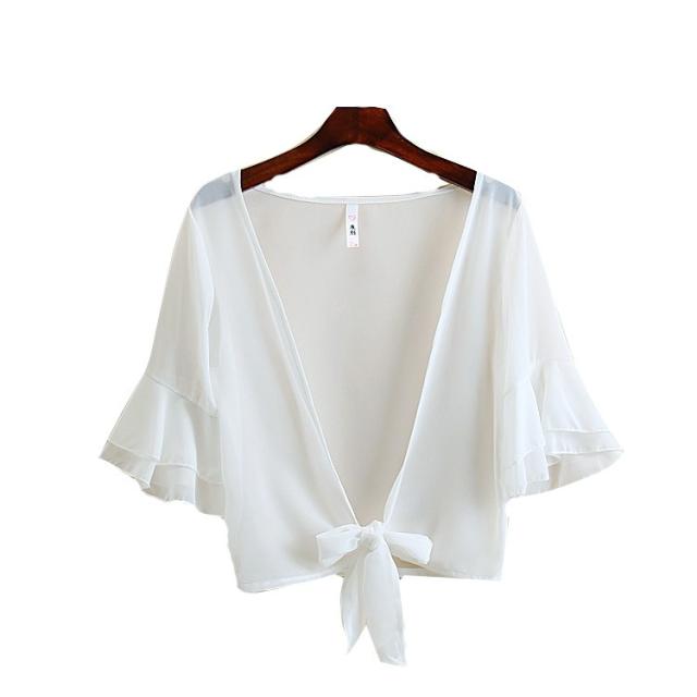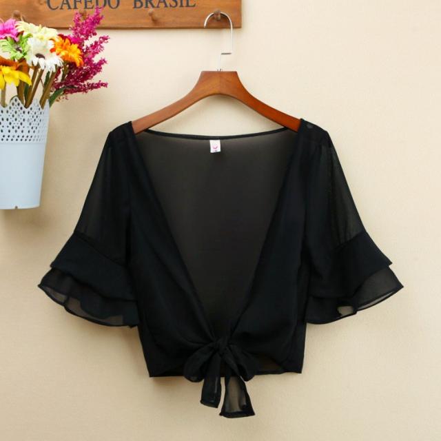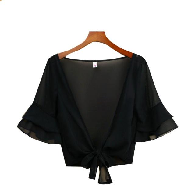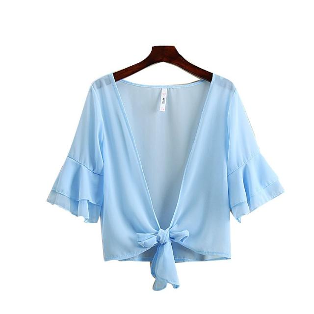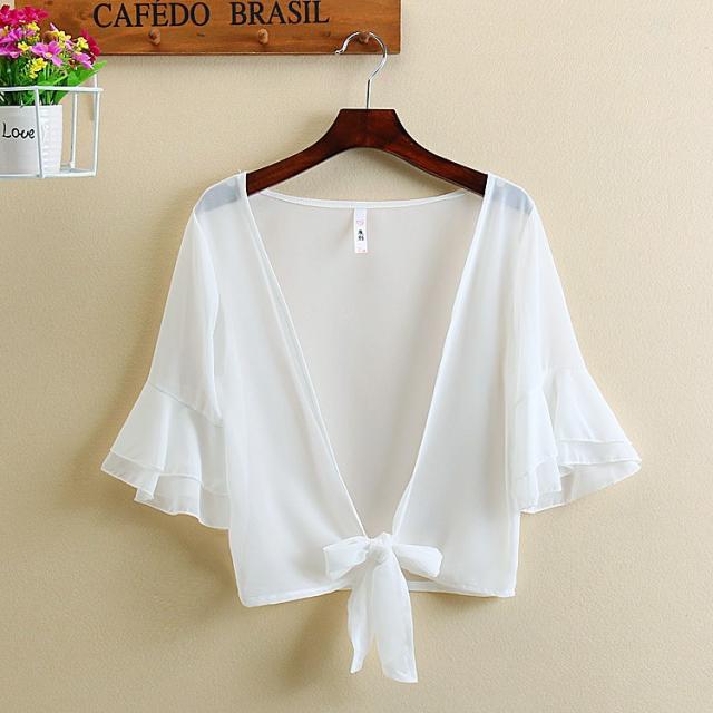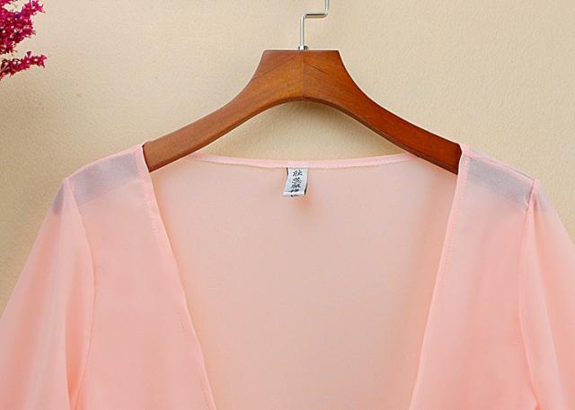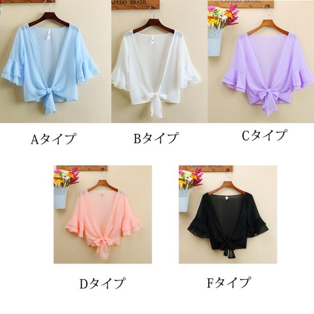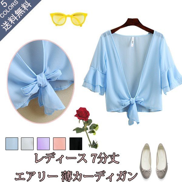 カーディガン ブラウス 七分袖 ショート丈 ゆったり 羽織り 薄手 ガウン レディース トップス シフォン