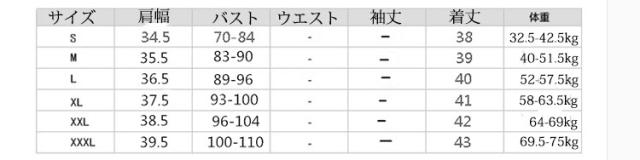 | サイズ | S M L XL 2XL 3XL |
