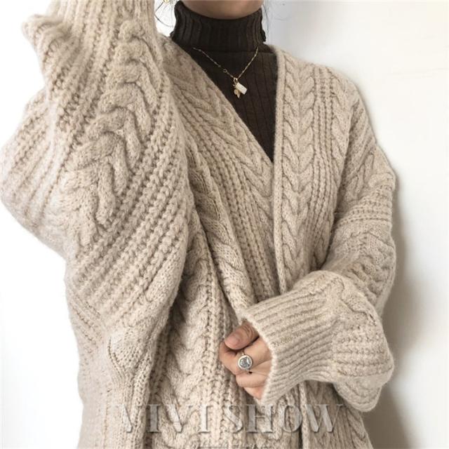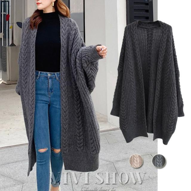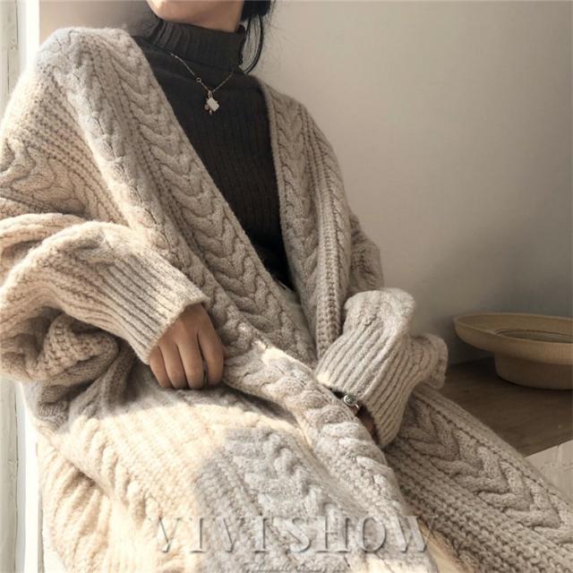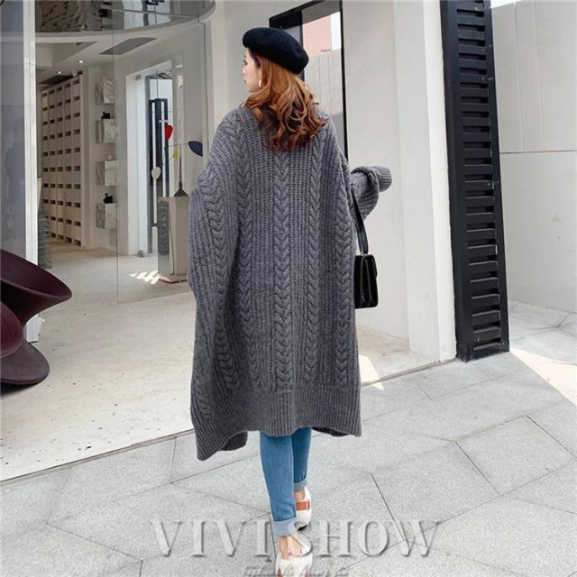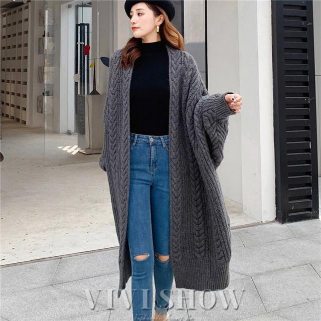 カーディガン レディース 長袖 トップス ケーブルニットロングカーディガン