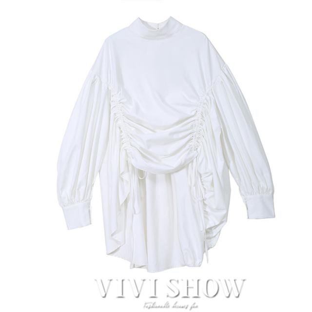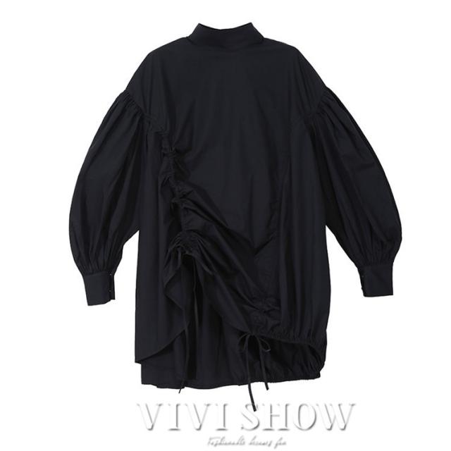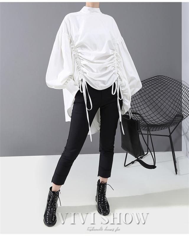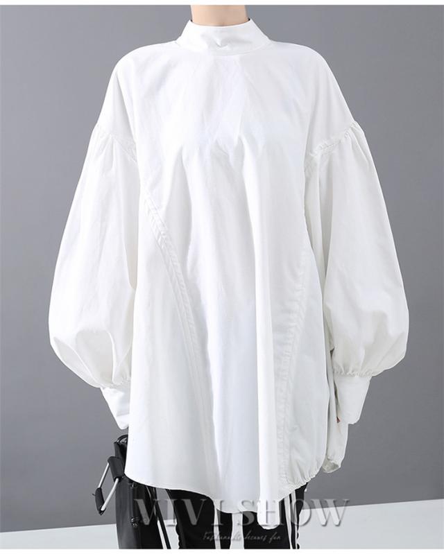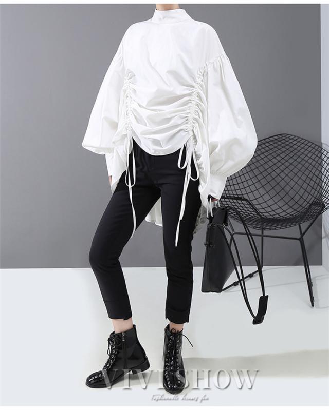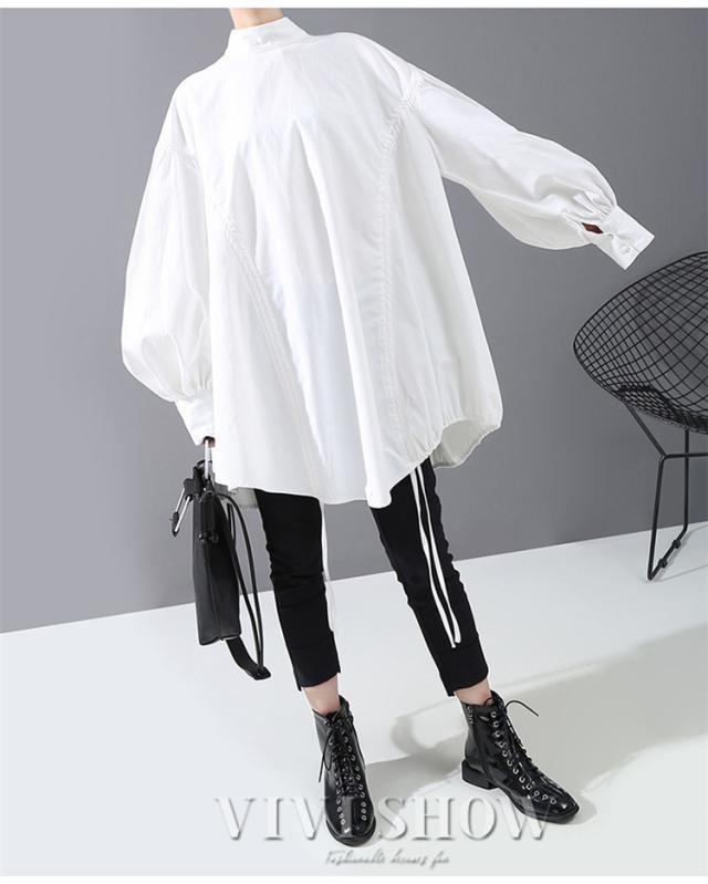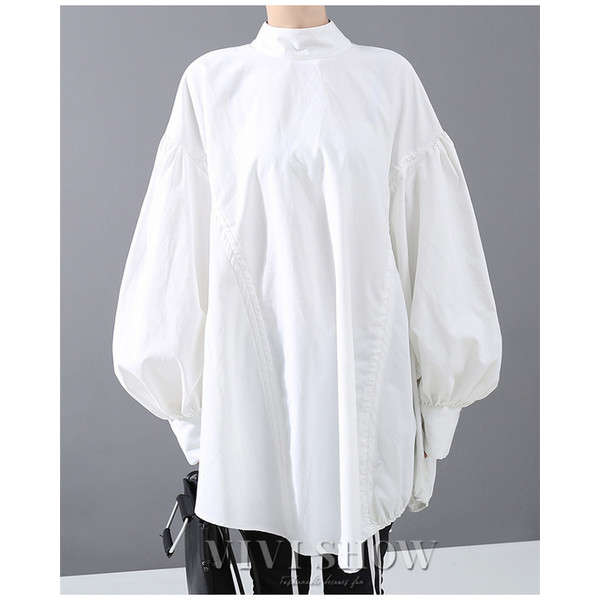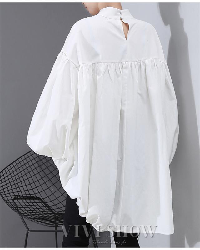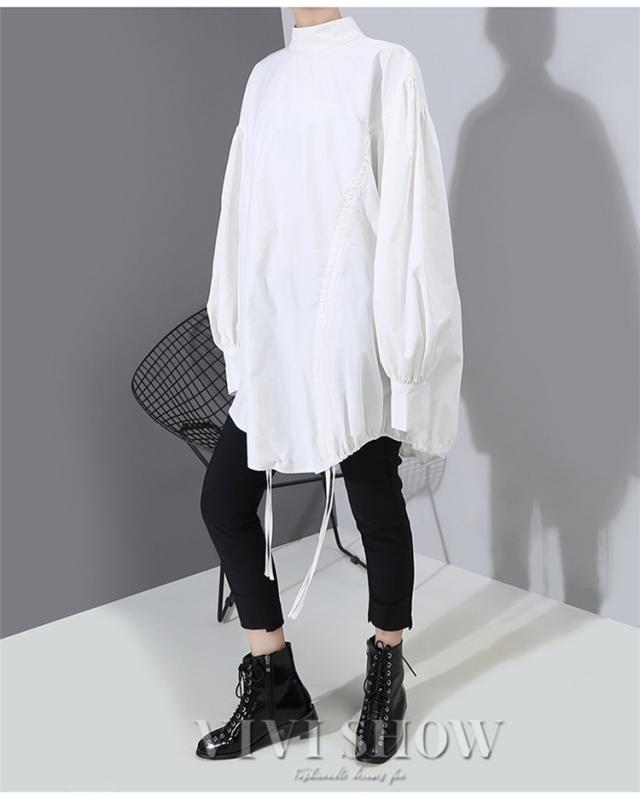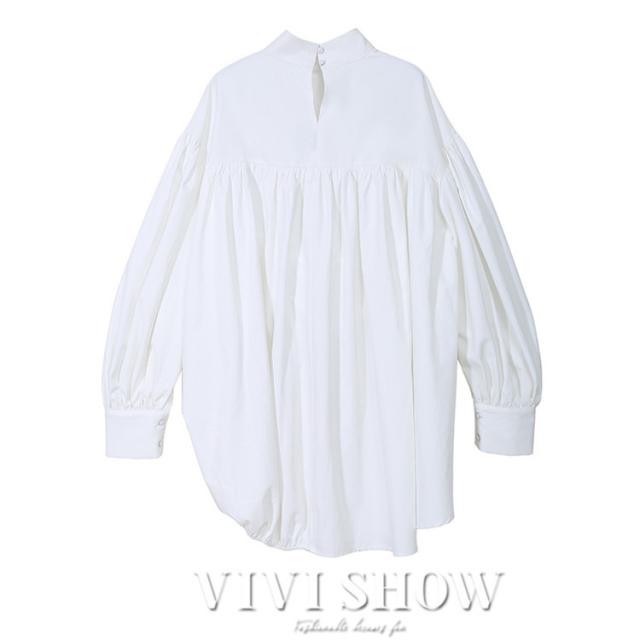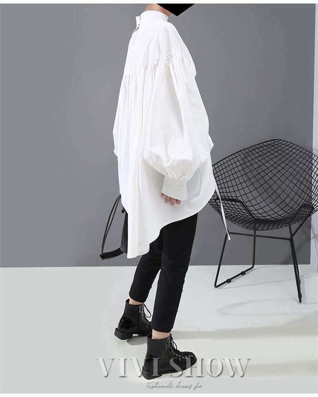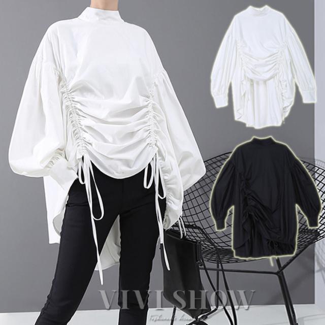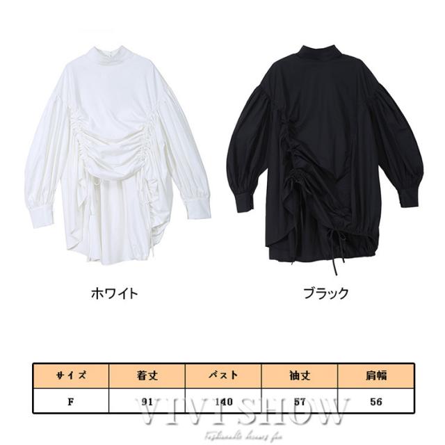 ブラウス レディース とろみシャツ 無地 長袖 パフスリーブ Vネック ゆったり 大きいサイズ トップス 秋 冬 春