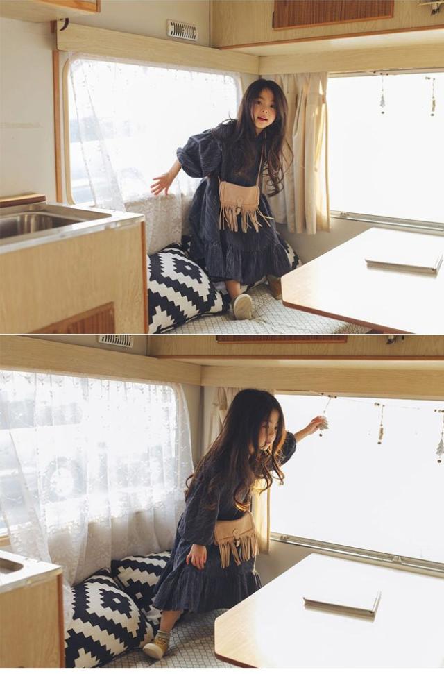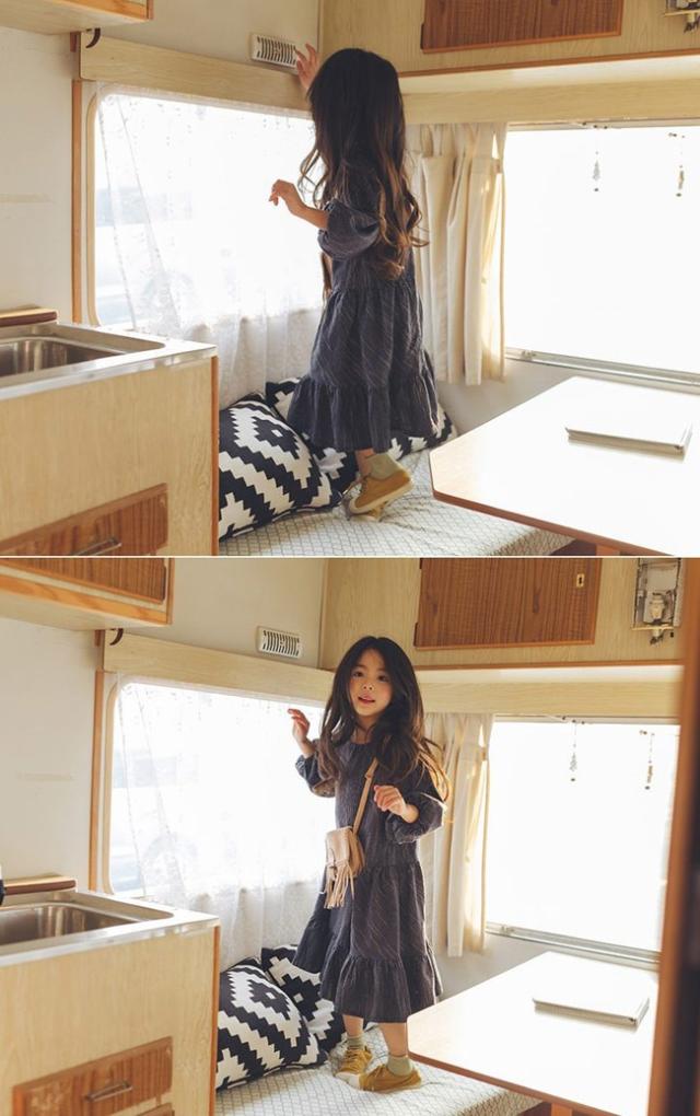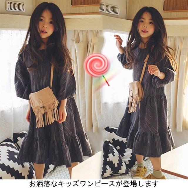 長袖ワンピース パフスリーブ 女の子 秋新作 キッズ ガールズ ジュニア ワンピース ロング丈 普段着