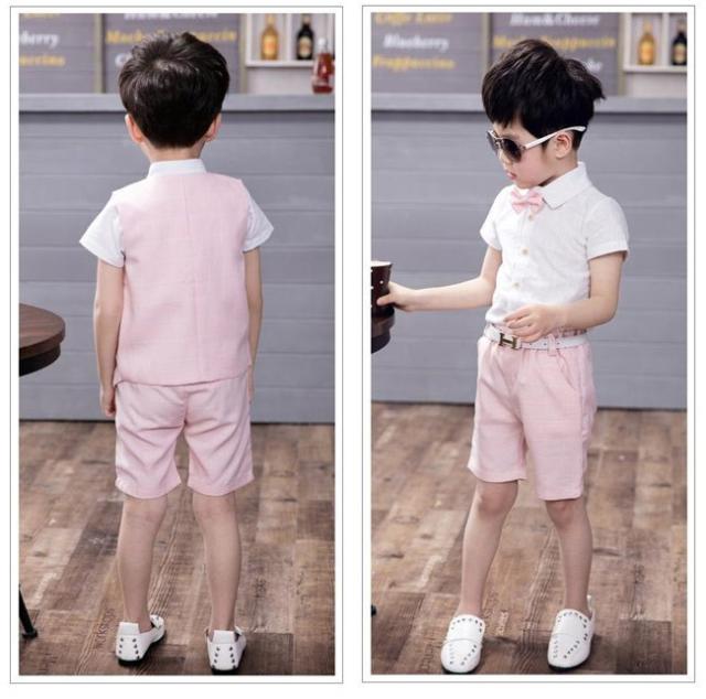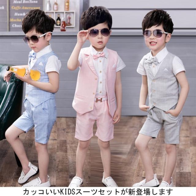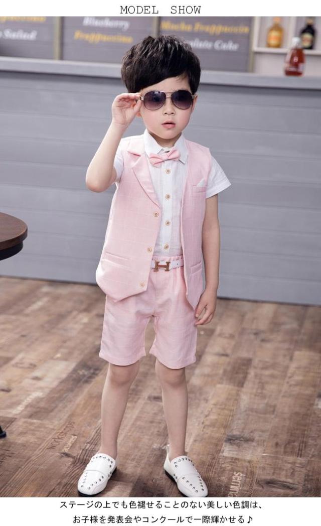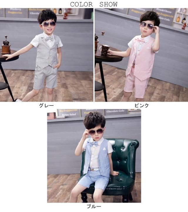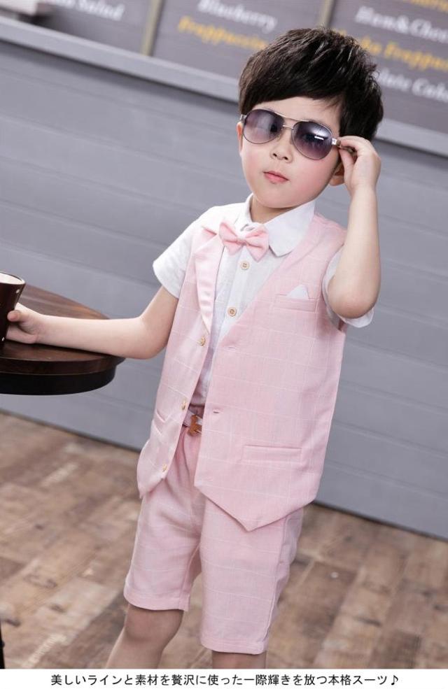 【4点セット★シャツ+ベスト+ショートパンツ+ネクタイ】卒業式スーツ 入学式 子供服 男の子 ショートパンツ フォーマル スーツセット