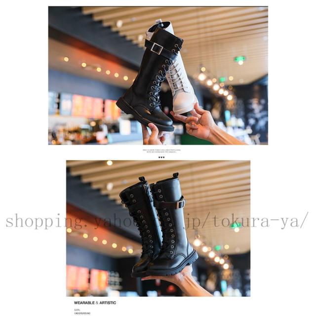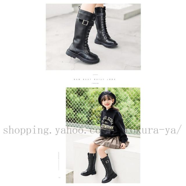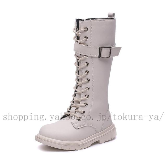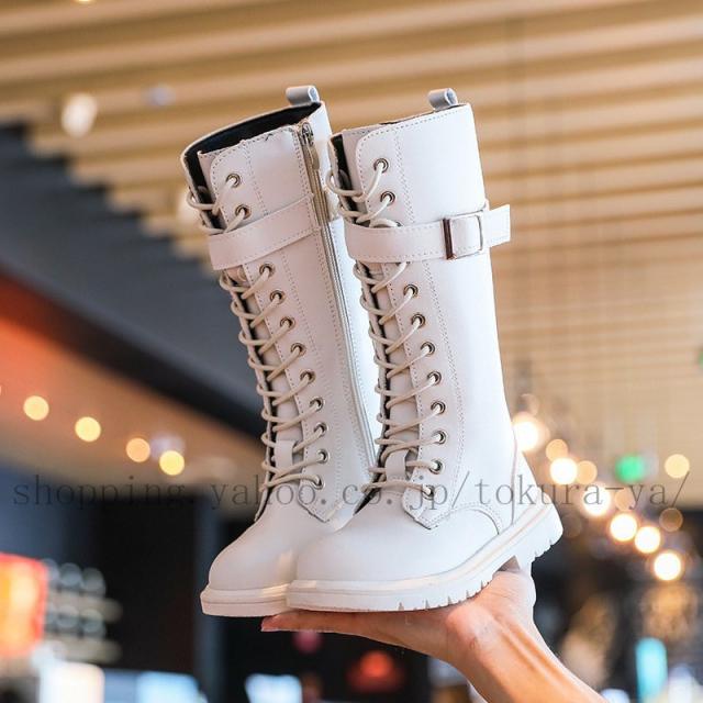 レースアップブーツ 子供 ブーツ ロングブーツ 女の子 ブーツ 編み上げブーツ ワークブーツ 子供靴 長靴 子供用 ローヒール キッズ ジュニア 防寒 裏起毛 厚底