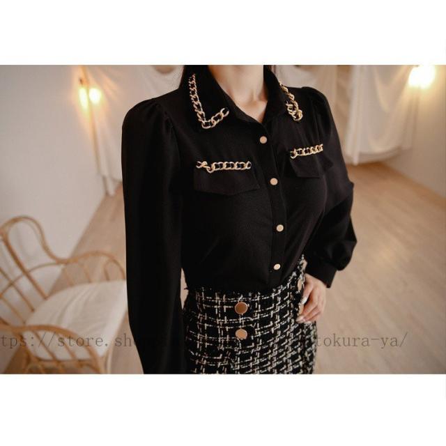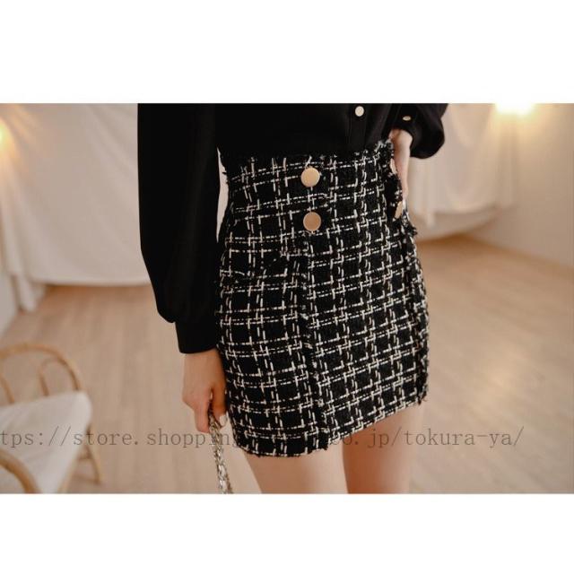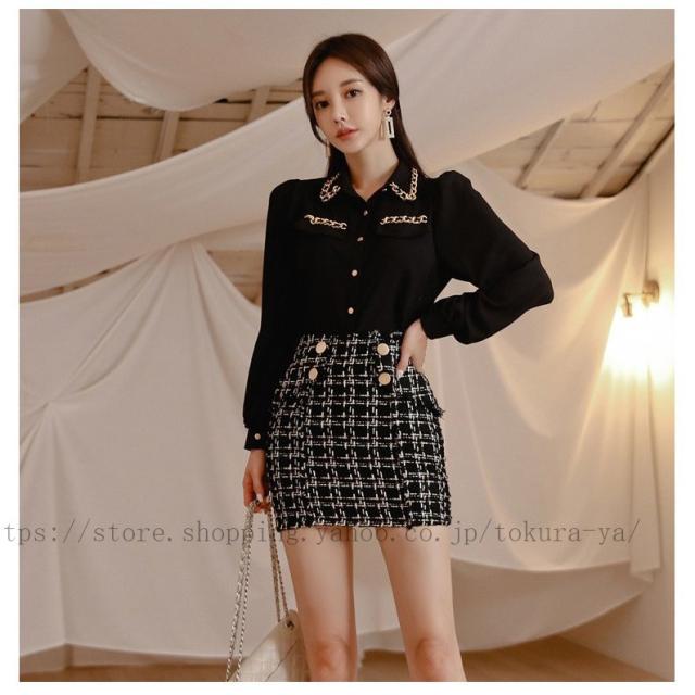 | 色 | ブラックブラウス ツイードスカート |