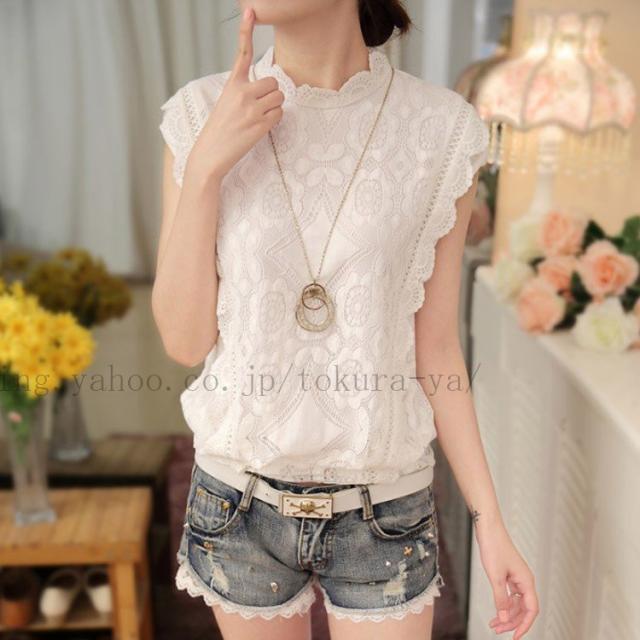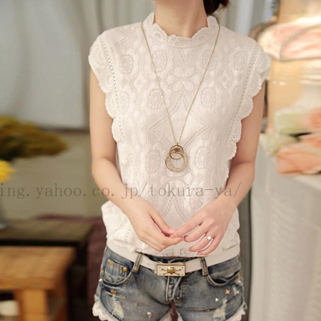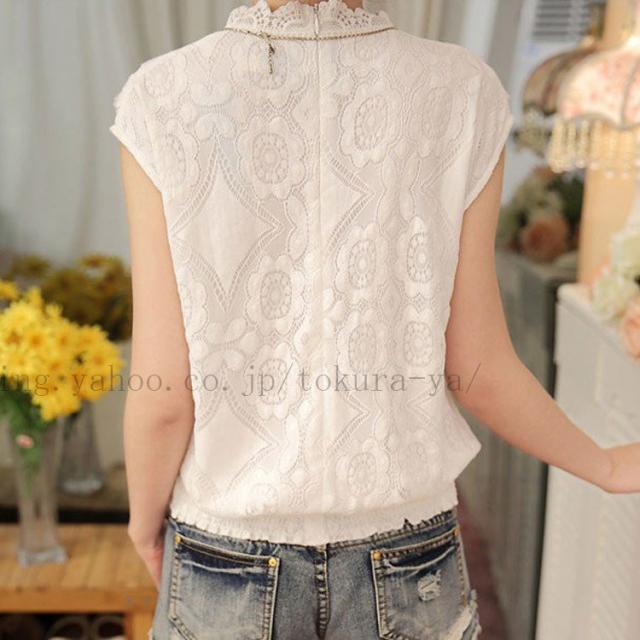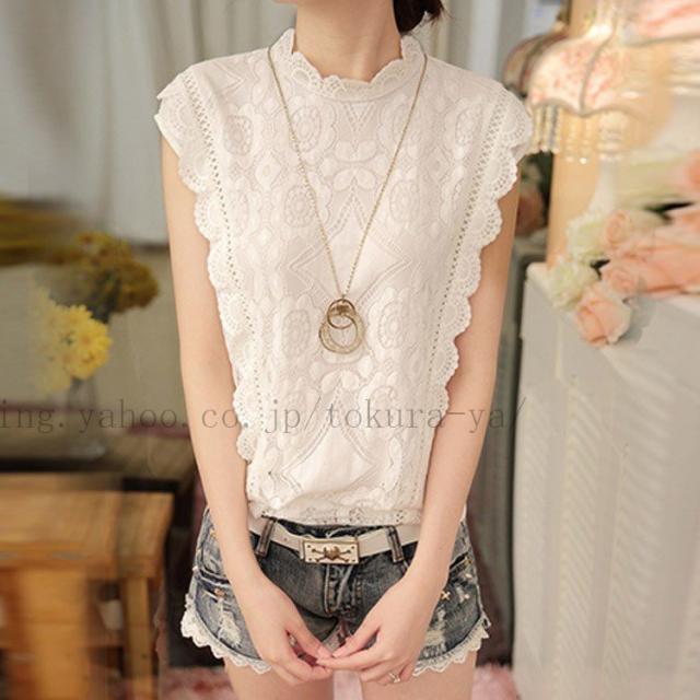 【m-XXLサイズ】ハイネックブラウス ノースリーブ 大きいサイズ 総レース トップス タンクトップ スカラップ フリル 花柄刺? 袖なし レディー