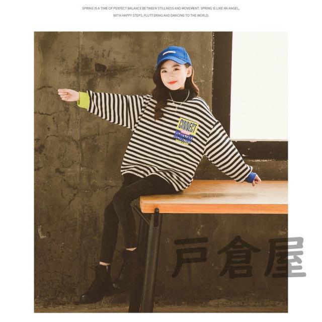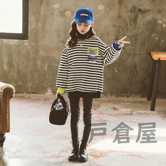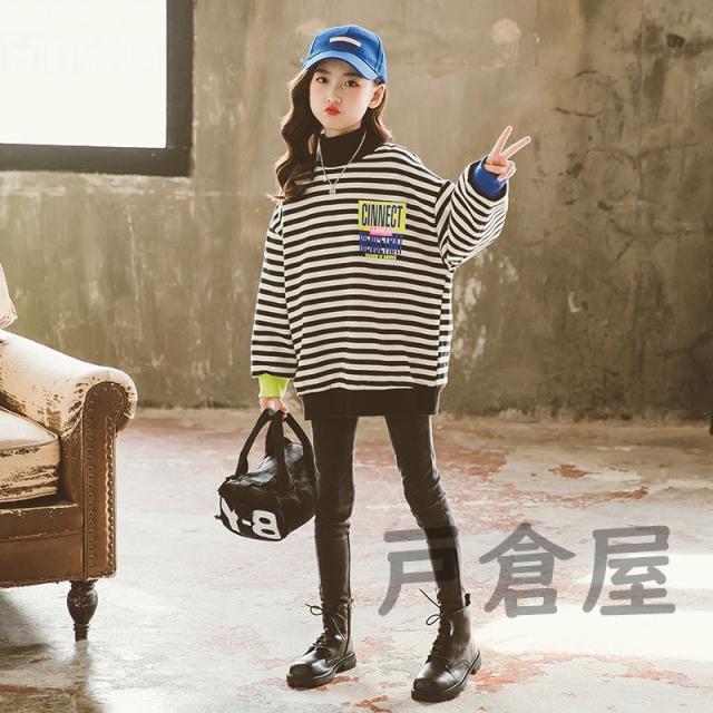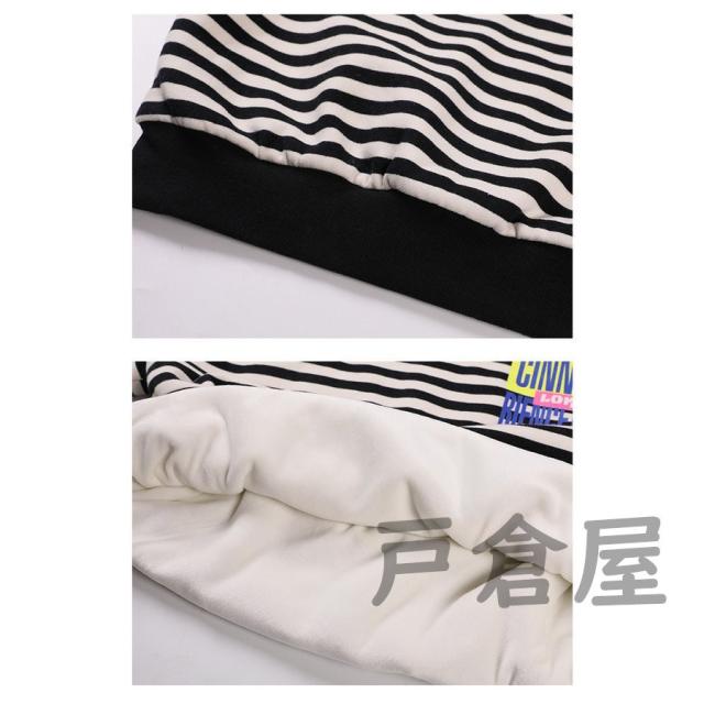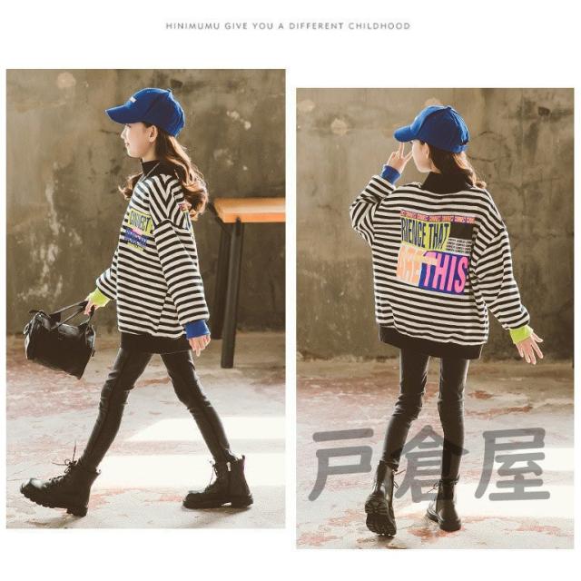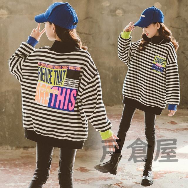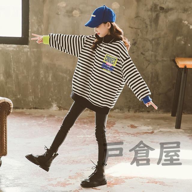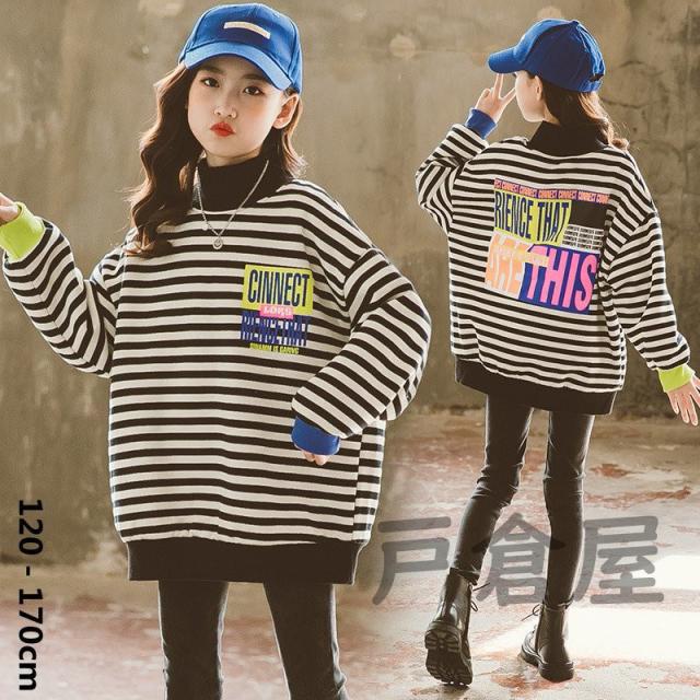 キッズ 女の子 春秋冬 パーカー ストライプ 裏毛 長袖 厚手 プルオーバー 韓国系 暖かい カワイイ 登園通学/デイリー 肌に優しい 120-170cm