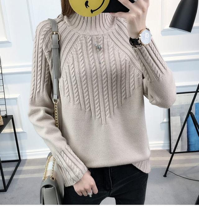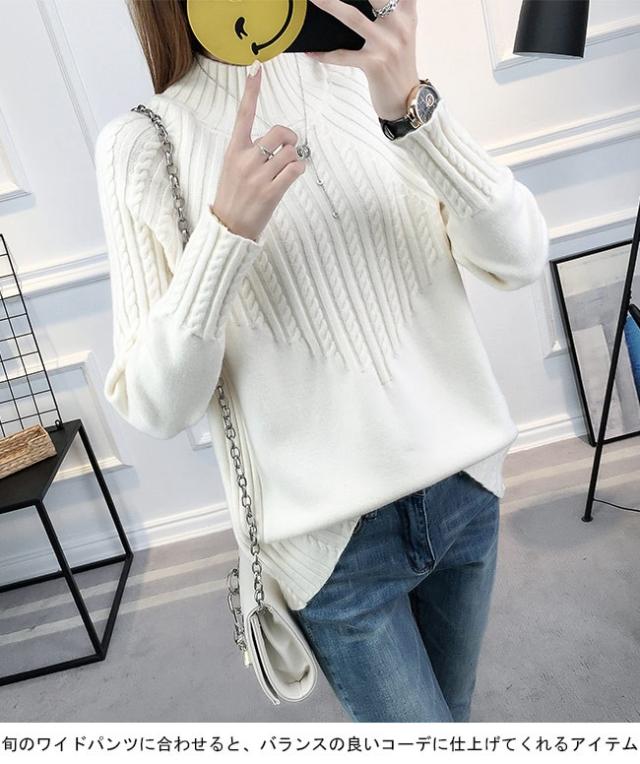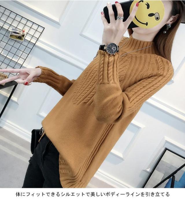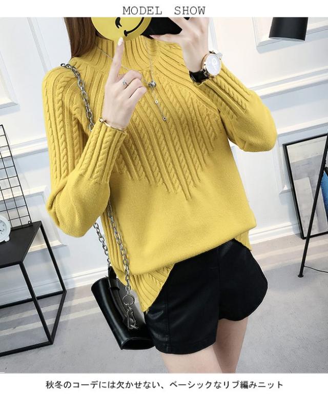 レディース ニットセーター ハーフハイネック 長袖 リブ編みニット プルオーバー 女性用 ニット トップス 冬物 カジュアル 春秋物