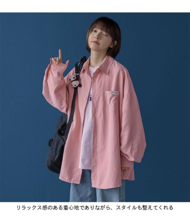 シャツ レディース 長袖 ゆったり カジュアルシャツ 無地 シャツジャケット 春秋 オーバーサイズ ライトアウター 長袖シャツ