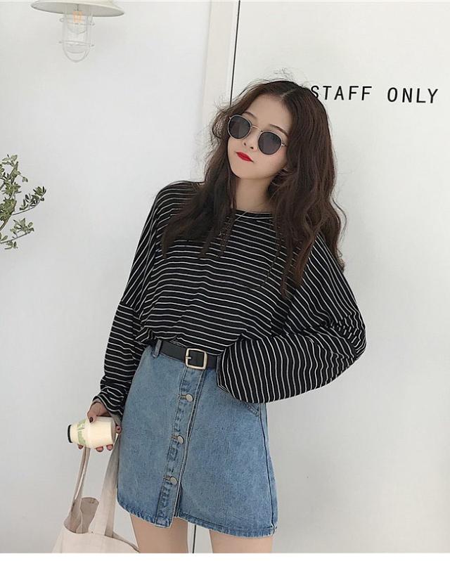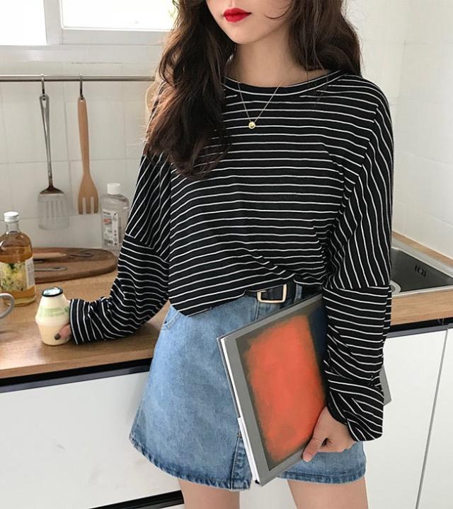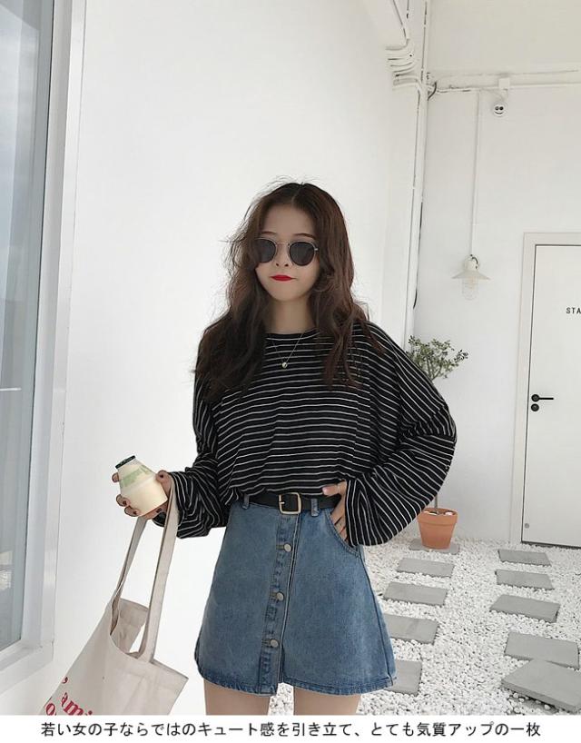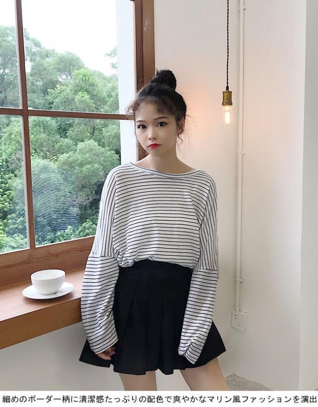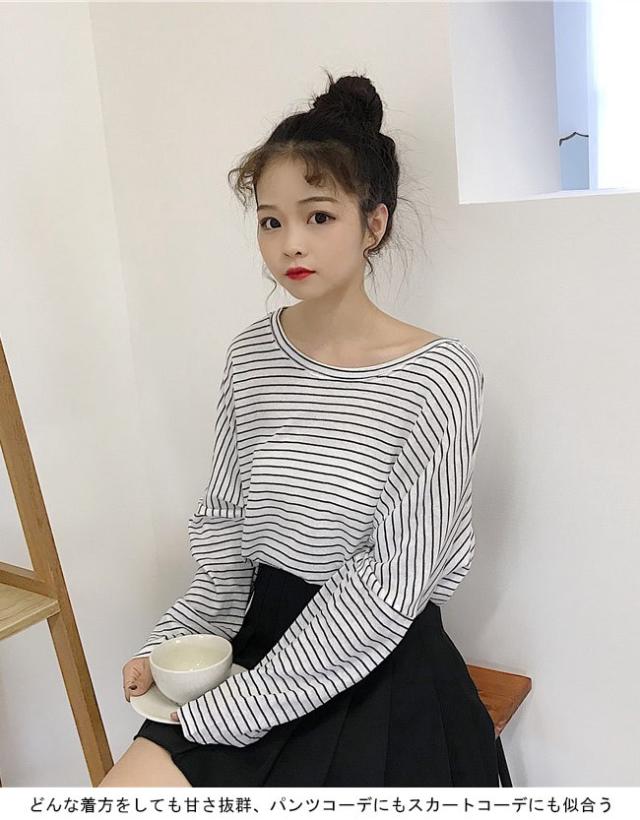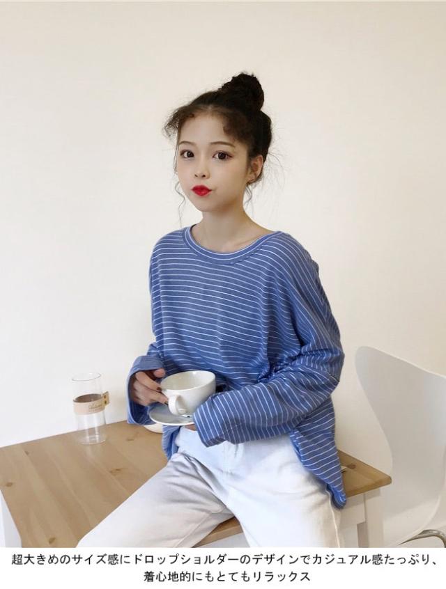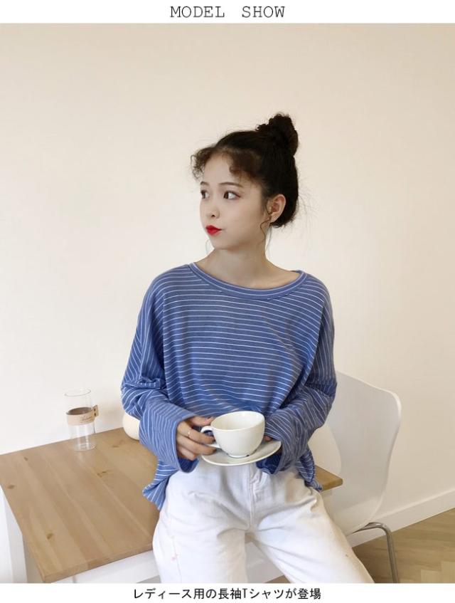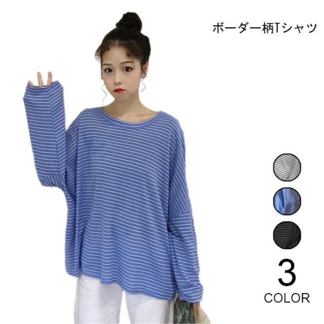 長袖Tシャツ レディース ボーダー柄 Tシャツ ゆったり マリンセーラー 丸襟 女性用 トップス カットソー カジュアル ドロップショルダー