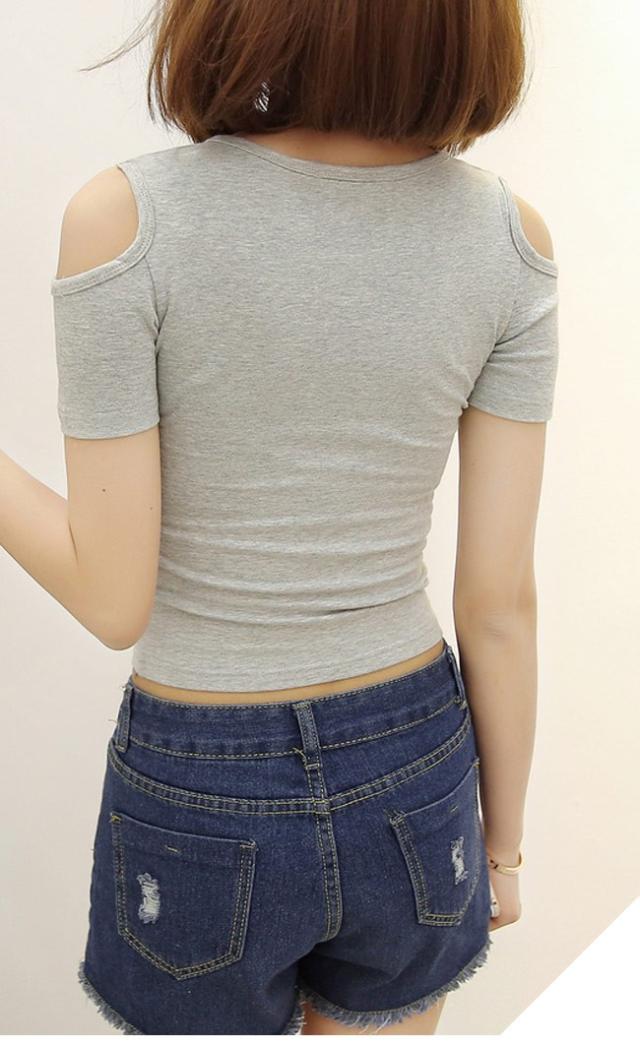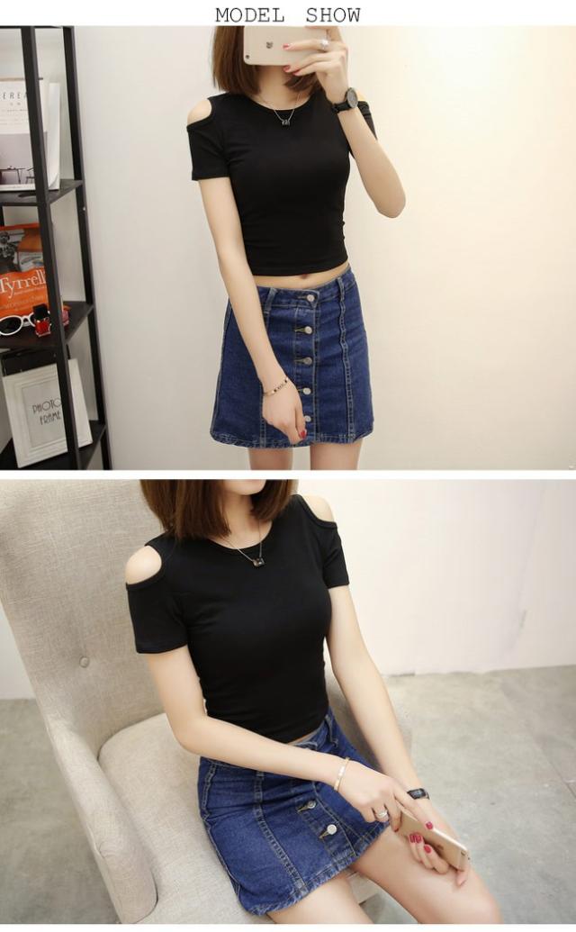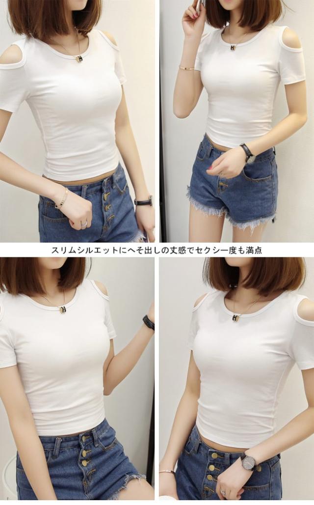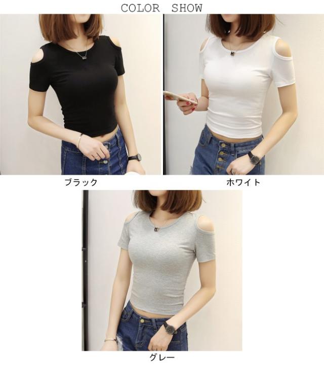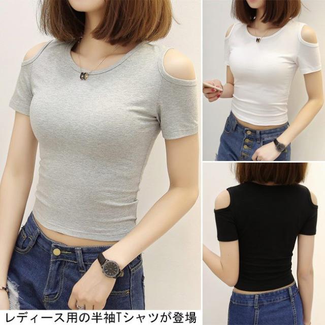 Tシャツ オフショルダー 半袖 レディース ヘソ出し スリム 女性用 トップス 夏物 半袖Tシャツ タイト セクシー 肩出し 丸襟