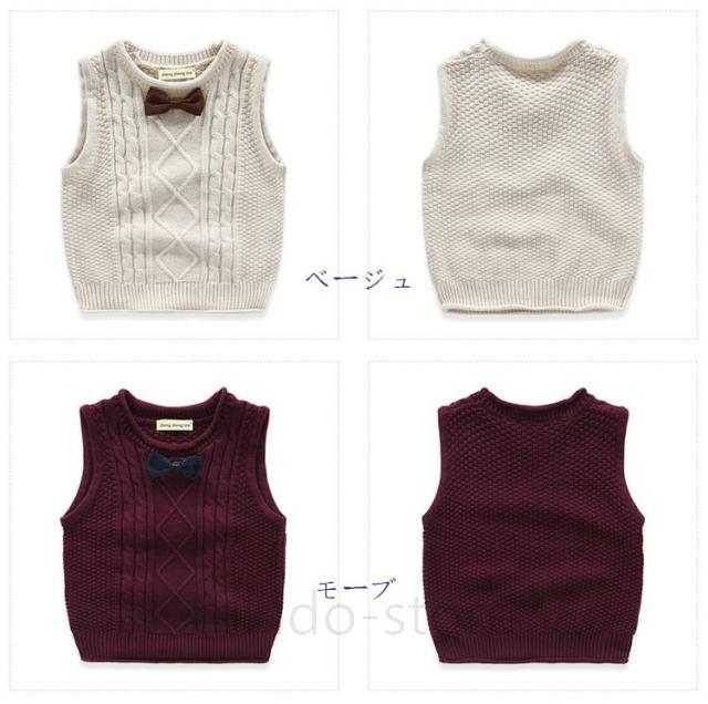 ニット ベスト キッズ ケーブルニット 女の子 男の子 フォーマル ベスト 綿100% スクールベスト グレー 紺 ベージュ モーブ 人気新品