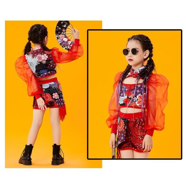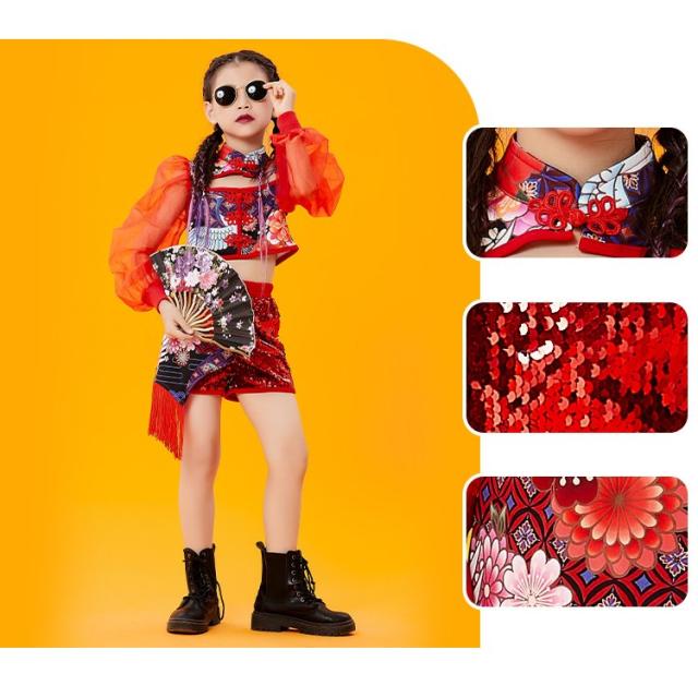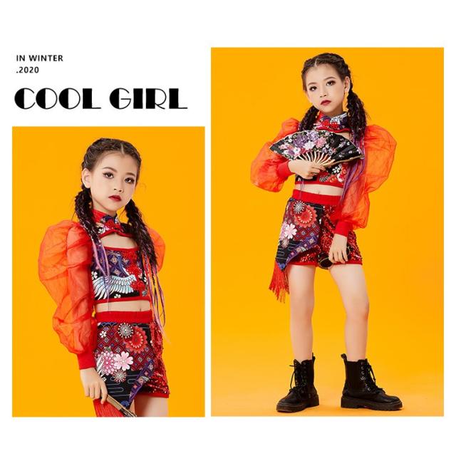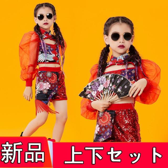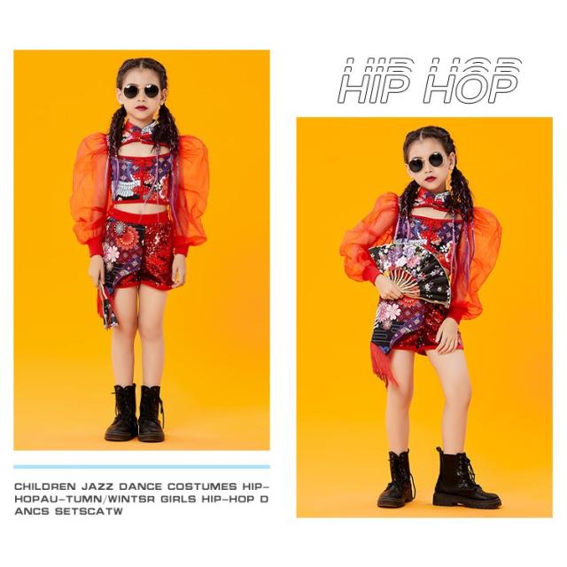 ヒップホップダンス衣装 ダンス キッズダンス衣装 ヒップホップ ロングパンツ ガールズ ダンス衣装 キッズ 韓国 派手 ダンス衣装