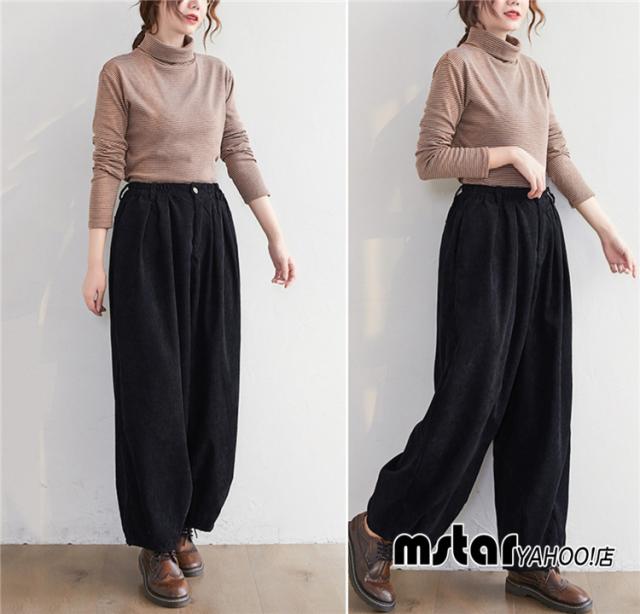 パンツ レディース 秋冬 ワイドパンツ コーデュロイパンツ 40代 50代 60代