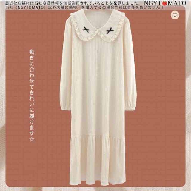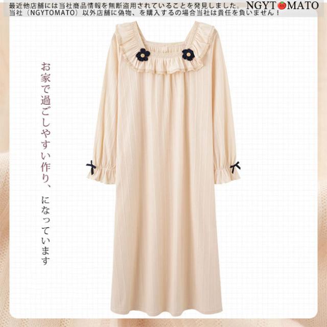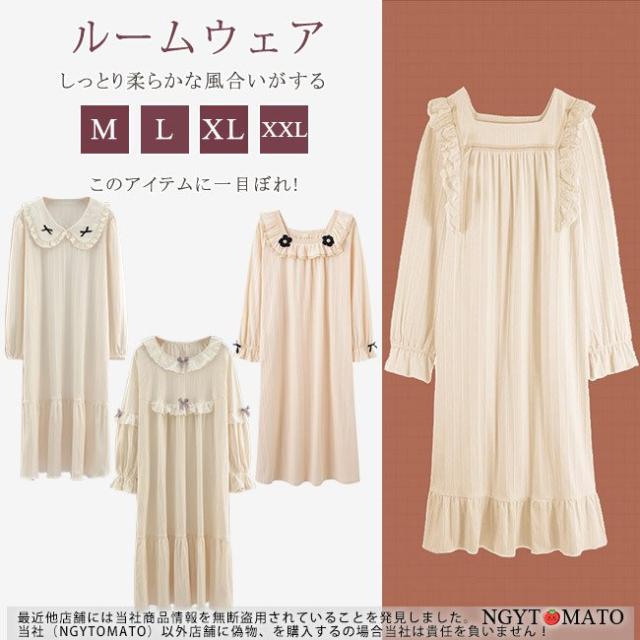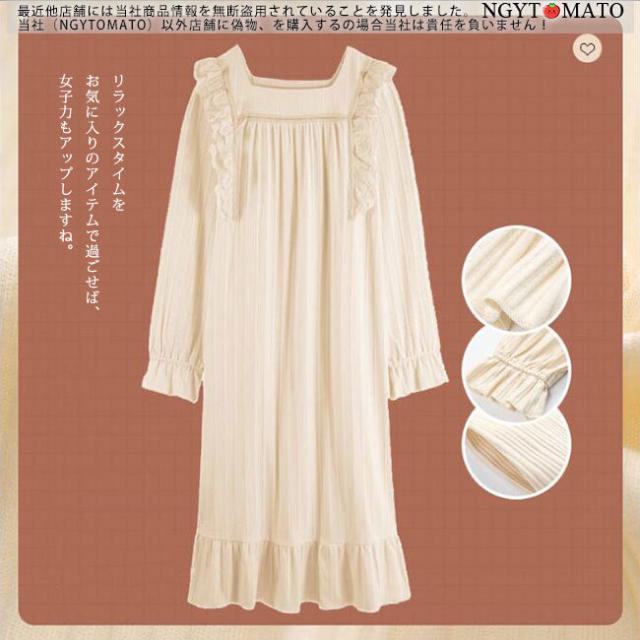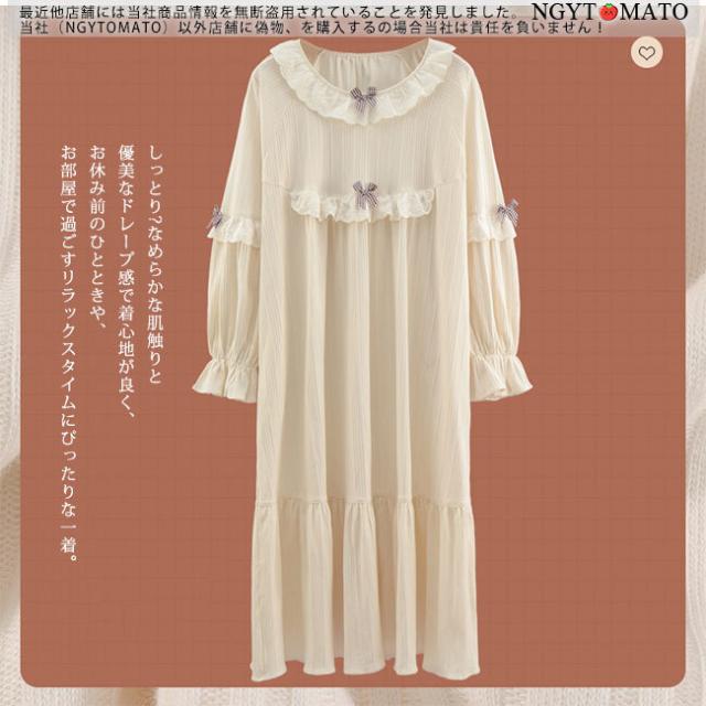 ルームワンピース 長袖 ルームウェア ネグリジェ パジャマ バスローブ ロング丈 フリル お姫様 カジュアル ゆったり 部屋着 大人 おしゃれ 可愛い プレゼント