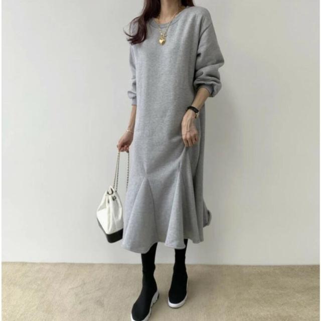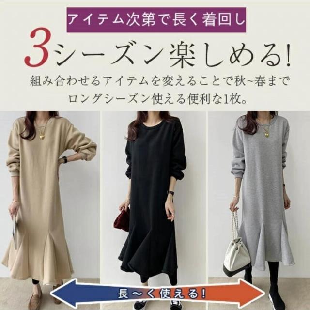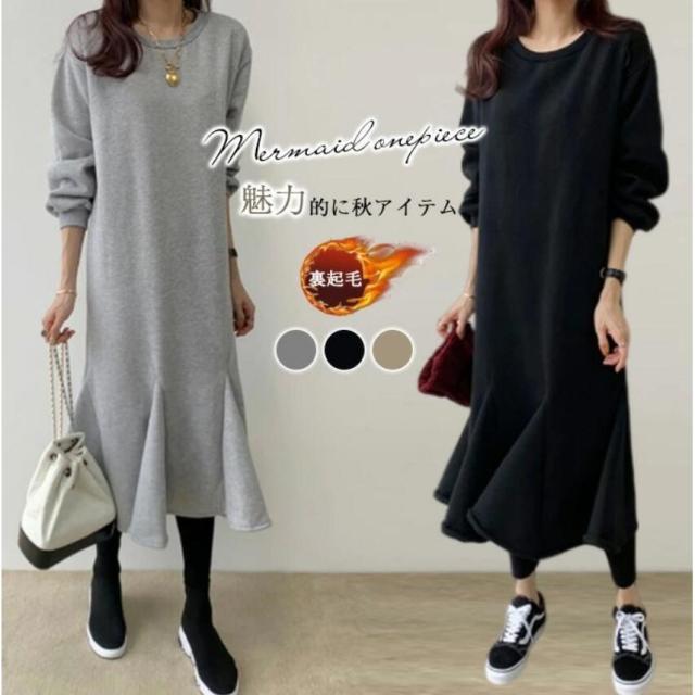 ワンピース ロング丈 長袖 秋 レディース 裏起毛 マーメイドワンピース マーメイド秋冬 きれいめ 黒 ロングワンピース 長袖ワンピース ゆったり