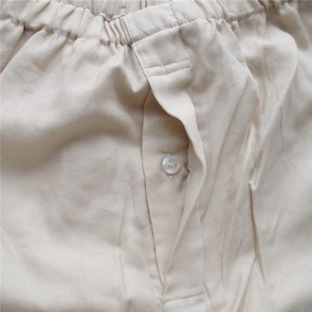 | サイズについての説明 | 肩幅--バスト--袖丈--着丈 s--45--104--57--73 m--46--108--58--75 l--48--112--59--77 xl--50--118--60--79 2xl--54--126--61--79 ズボン ---ウエスト--ヒップ--ズボン丈 s--64-90--102--98 m--66-92--108--100 l--68-94--112--102 xl--70-104--118--104 2xl--72-108--122--104 |