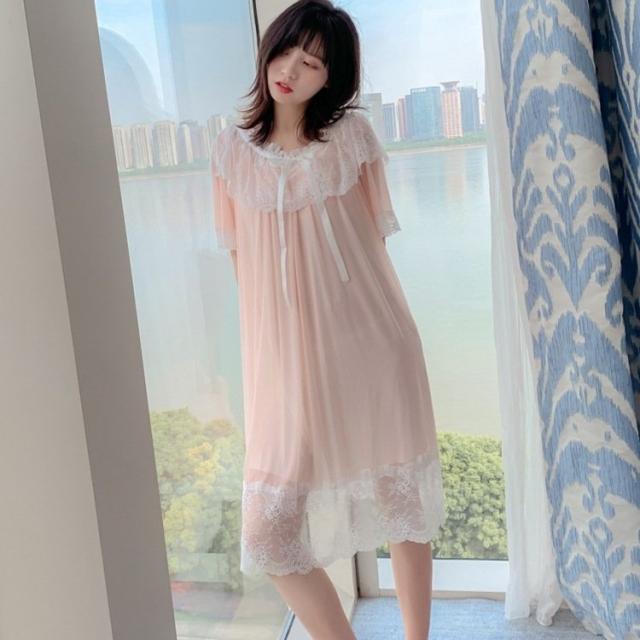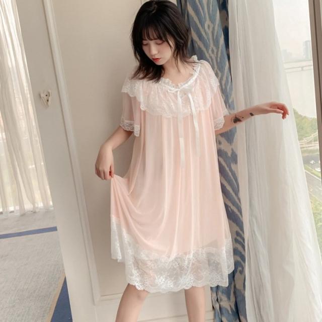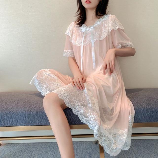パジャマ ワンピース レディース ネグリジェ レース 半袖 可愛い パジャマ 夏 部屋着 かわいい 寝巻き 体型カバー 薄手 ルームウェア