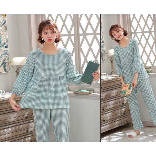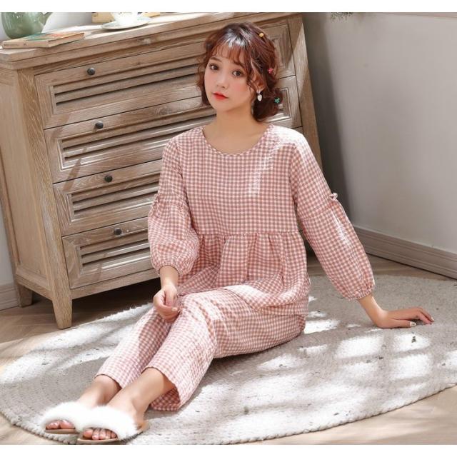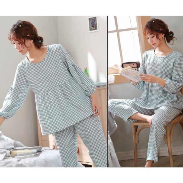 女性パジャマパジャマ ペアパジャマ 綿 ダブルガーゼ 上下セット 長袖 着心地 肌ざわり 部屋着 ストライプ レディース